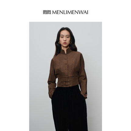 门里门外斜纹织金立领束腰两件套套装高知穿搭设计显瘦上衣阔腿裤
