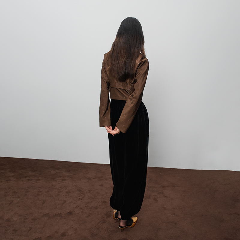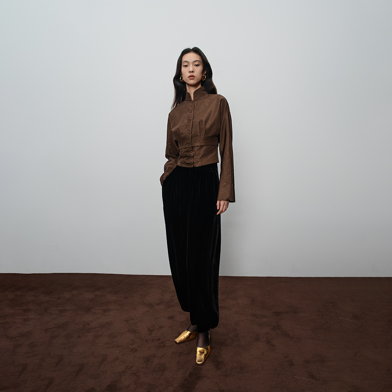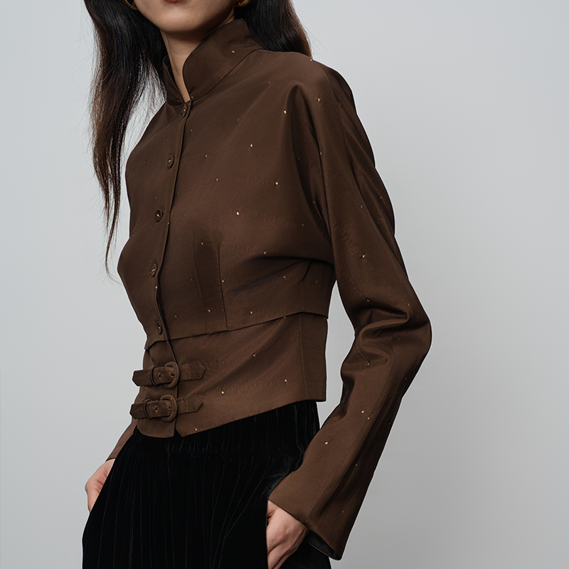斜纹织金立领束腰两件套套装
