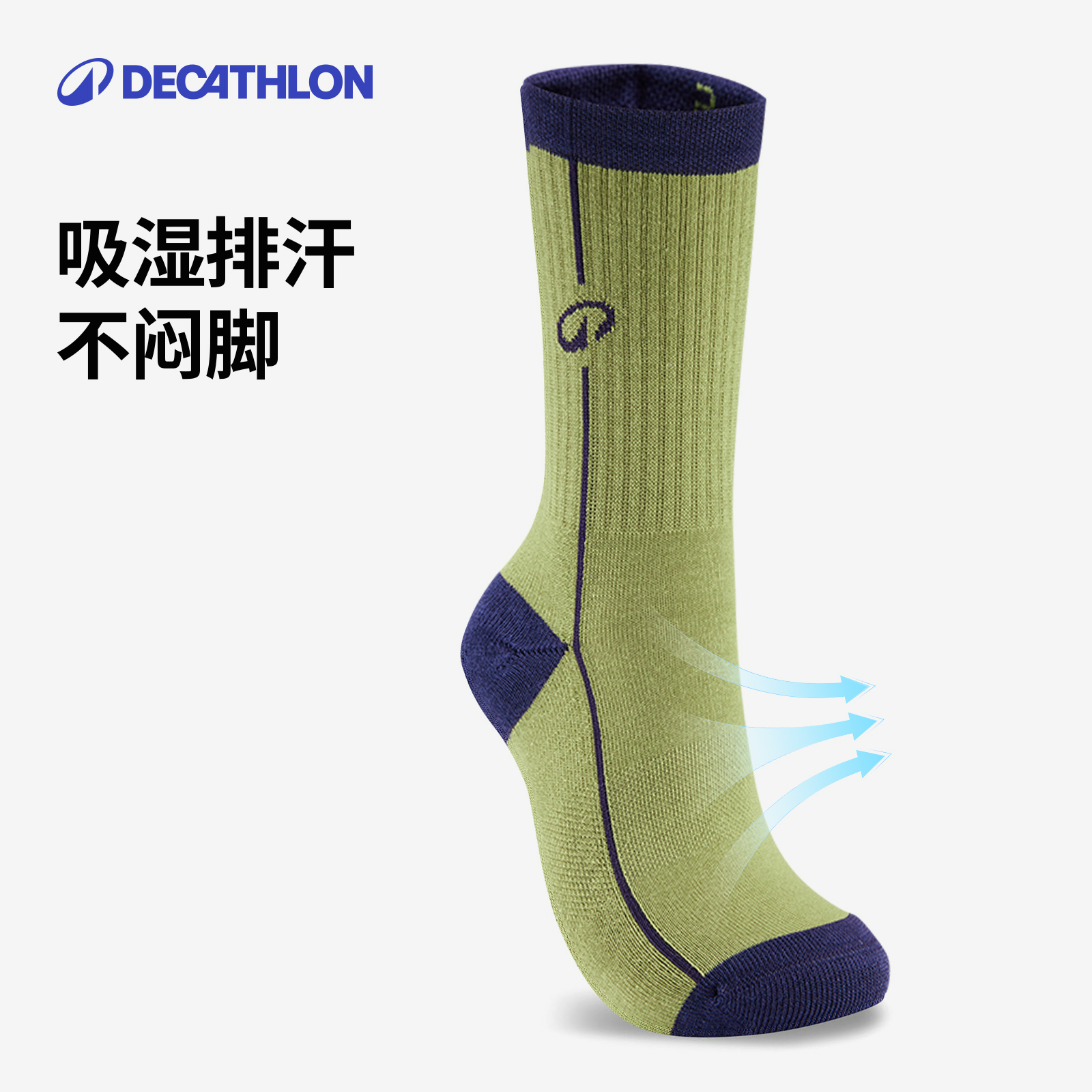 迪卡侬袜子男套装秋冬中筒袜休闲长袜女彩色毛巾袜厚款两双装OVA1