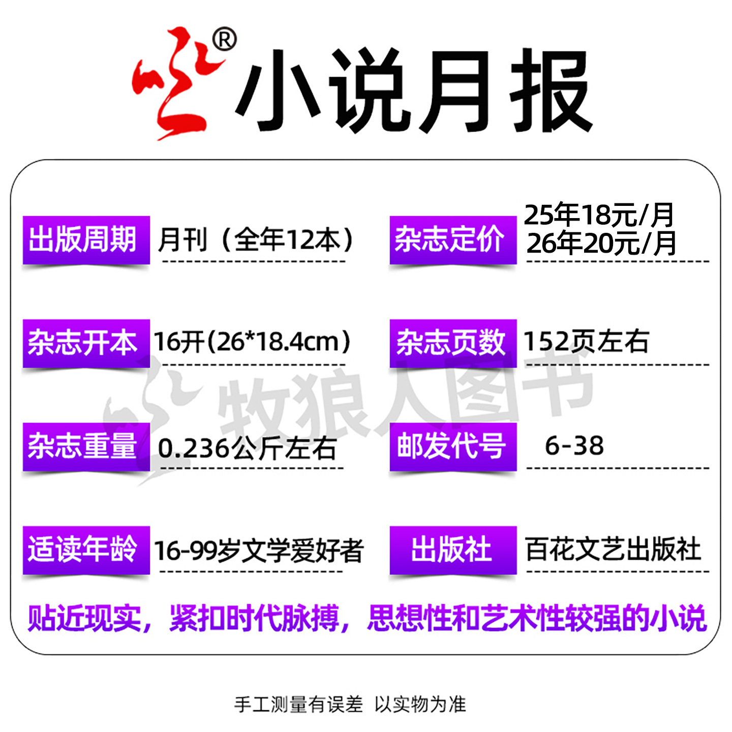 小说月报杂志/原创版2026年1/2月/2025年1-12月【全年/半年订阅/增刊/2024年1-12月】文学文摘收获长篇散文选刊百花文艺非合订过刊