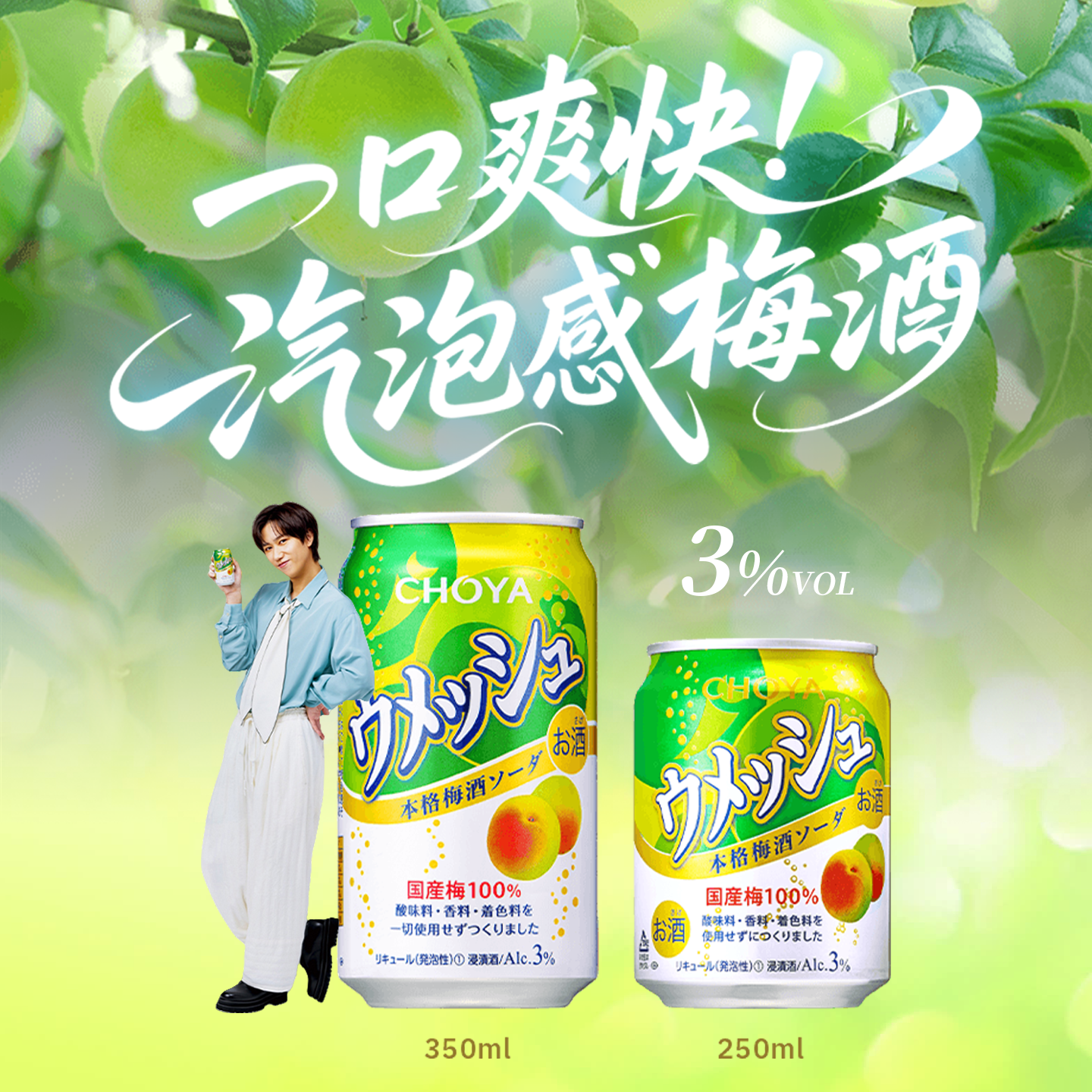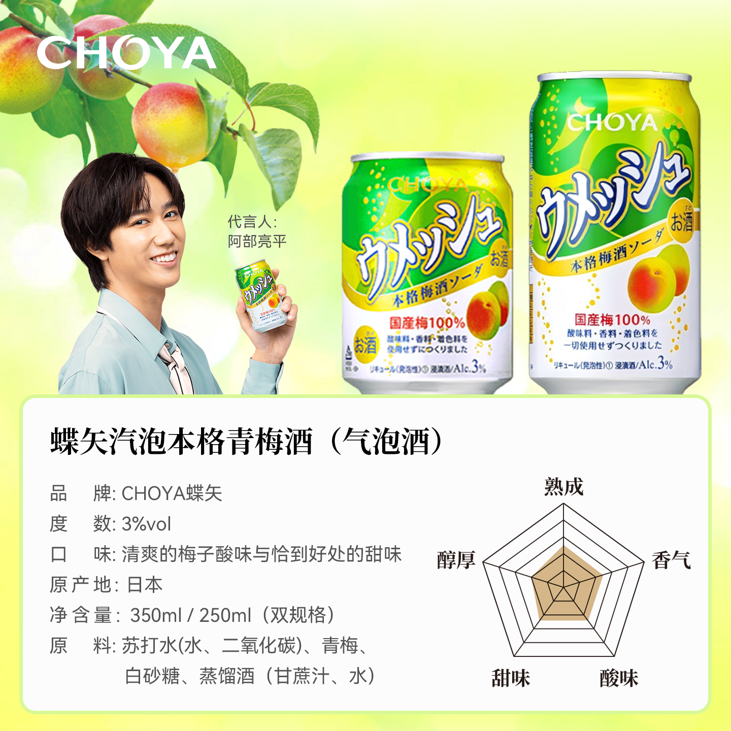 【阿部亮平推荐】CHOYA蝶矢汽泡本格梅酒日本原瓶进口3度350ml*6