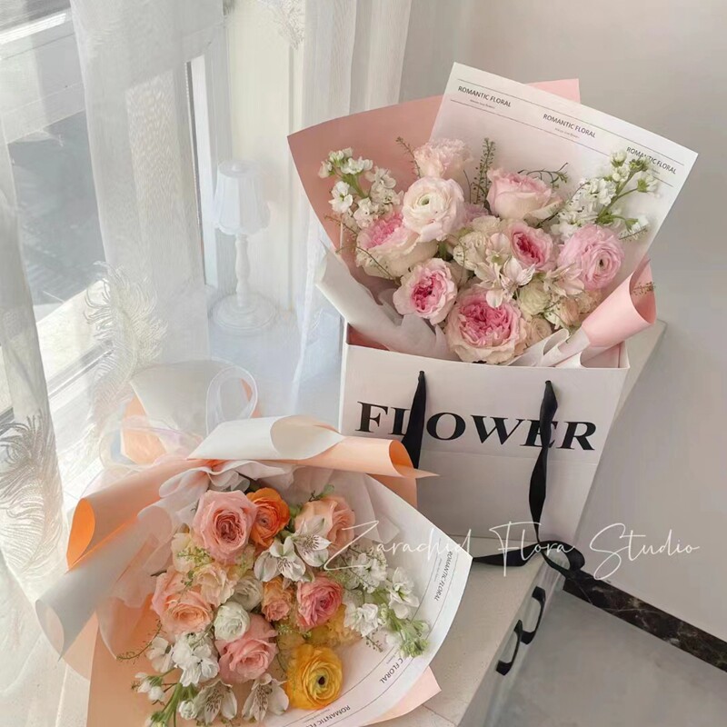 幸卉方形牛皮纸袋玫瑰花束手提袋礼品包装花束纸袋鲜花礼盒包装袋
