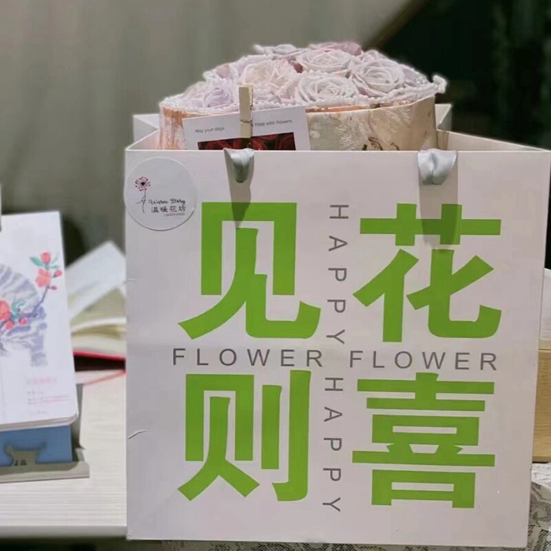 幸卉方形牛皮纸玫瑰花手提袋礼盒