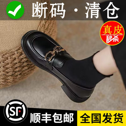 断码清仓真皮单鞋女2025春秋新款软底小皮鞋英伦风舒适平底乐福鞋