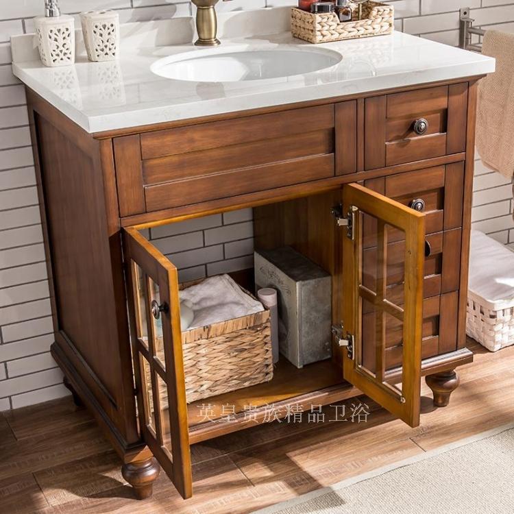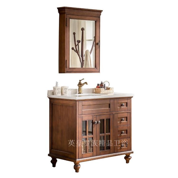 美式欧式仿古橡木实木浴室柜组合洗手盆洗脸盆柜卫浴柜落地柜8115