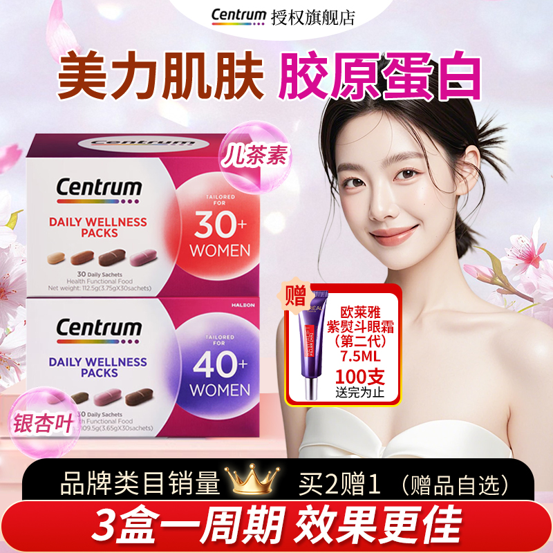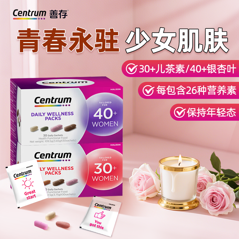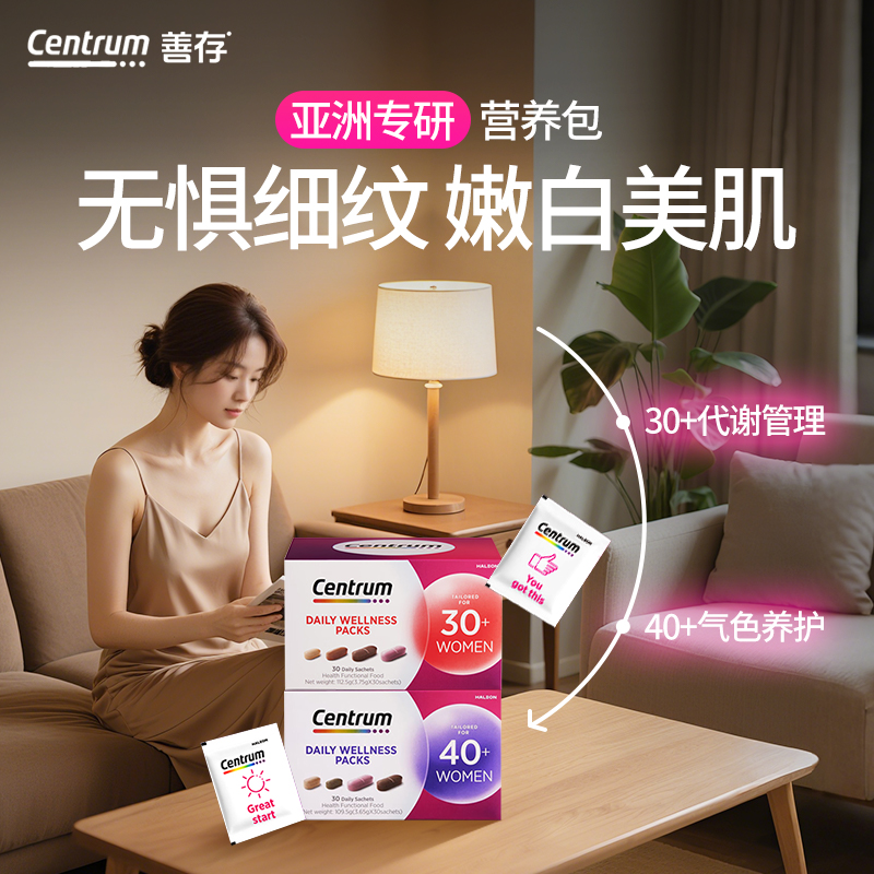 2盒装Centrum善存每日进阶女士营养包30/40钙铁女性复合维生素B族