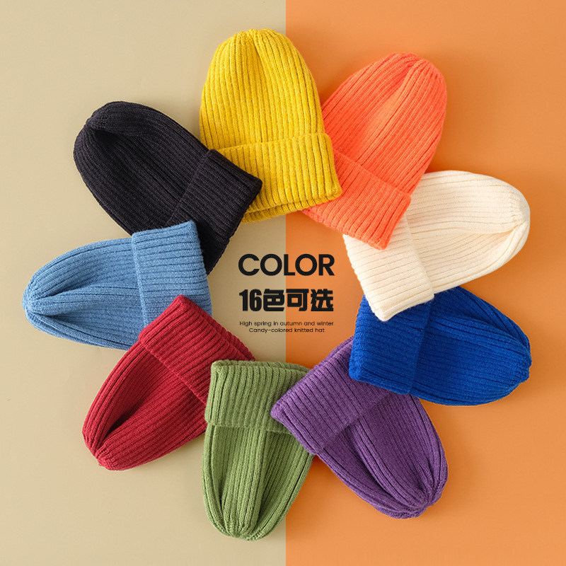 简约纯色尖顶毛线帽男女秋冬天保暖冷帽针织帽百搭休闲套头帽子潮