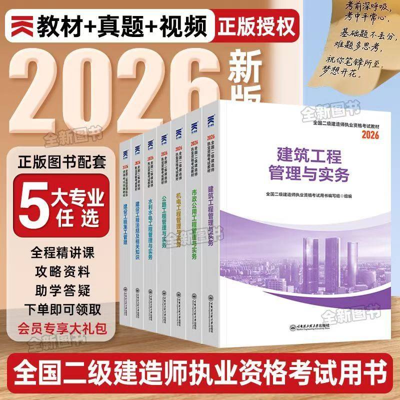 教材新编2026二级建造师建筑市政机电公路水利二建教科书历年试卷2025年真题全套正版考试用书必刷题官方大纲施工管理建设工程法规