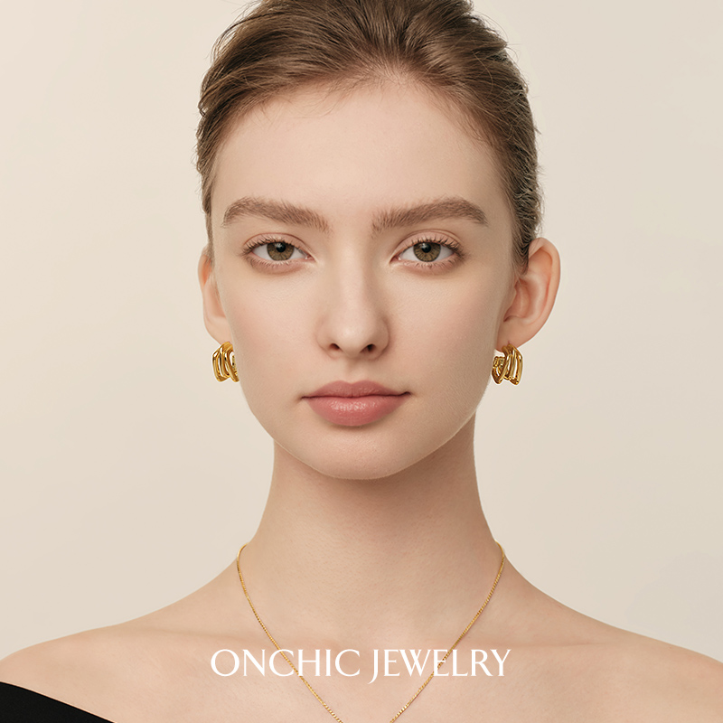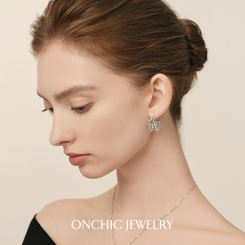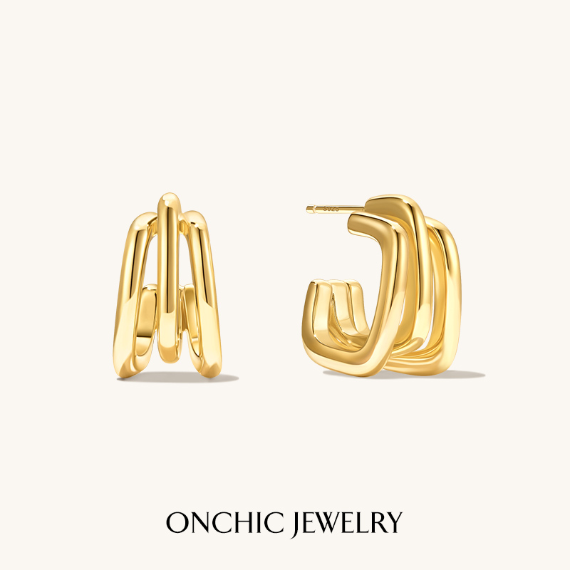 Onchic律动方形耳钉女气质大气耳环小众金色高级感轻奢感新款耳饰