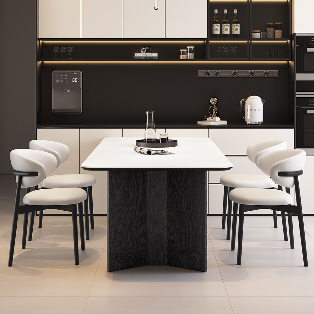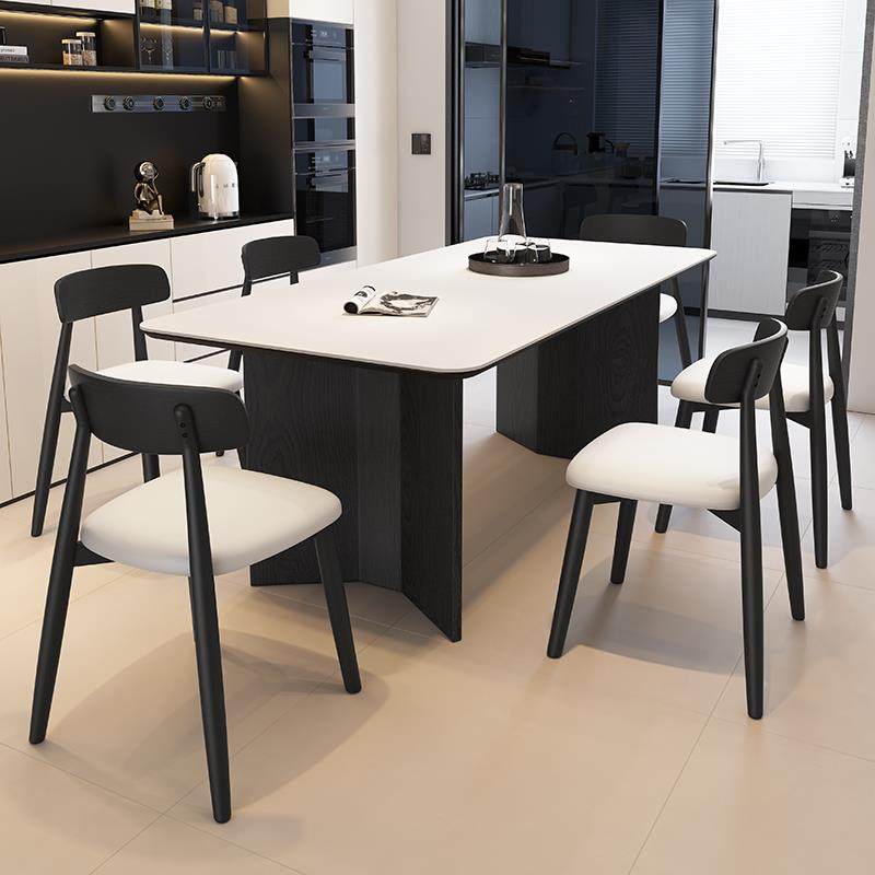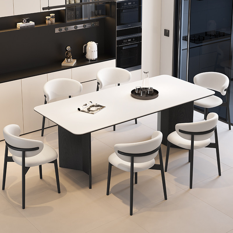 斯帝罗兰轻奢意式极简小户型长方形家用复古风岩板餐桌椅组合实木