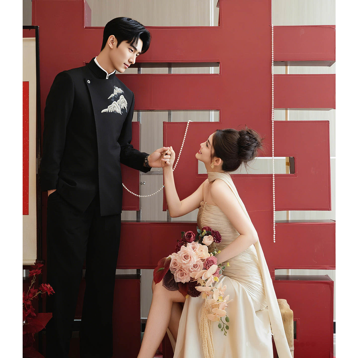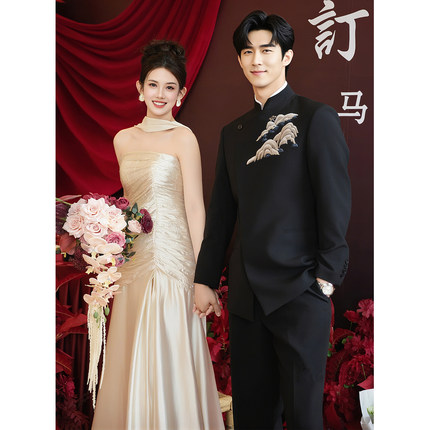 欢喜橙/原创设计新中式男士婚服新款立领中山装订婚帅气结婚礼服