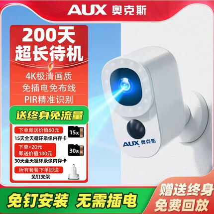 奥克斯摄像头监控器家用手机远程免插电无线室外无需网络wifi门口