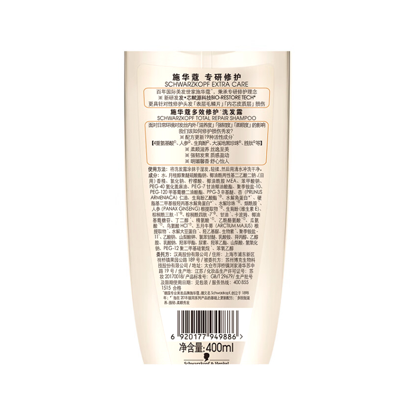 施华蔻Schwarzkopf洗发露多效修护400ml*2瓶护发清洁保湿防断发