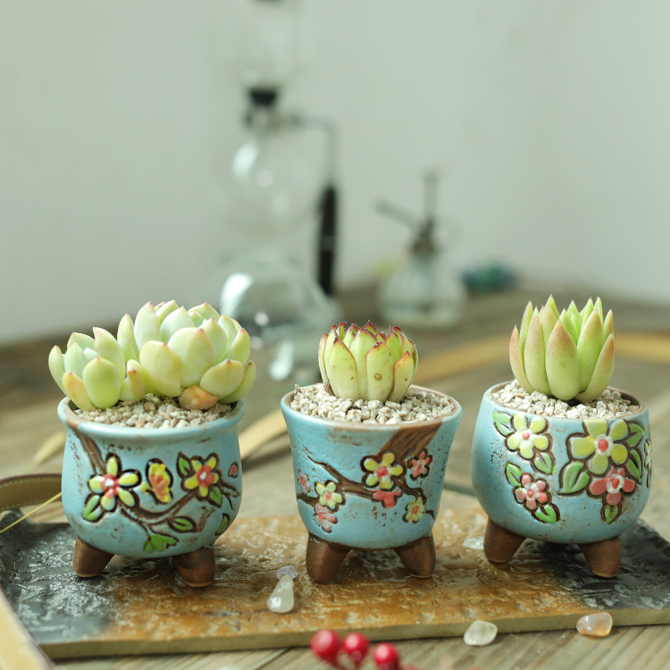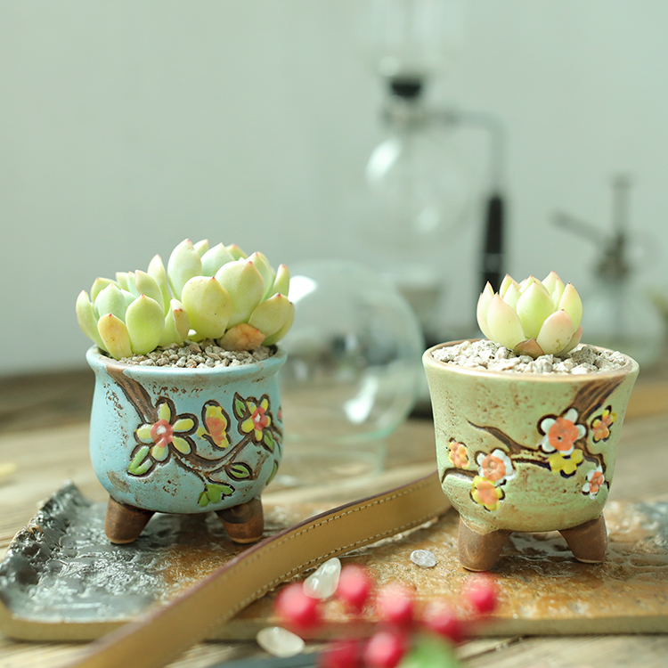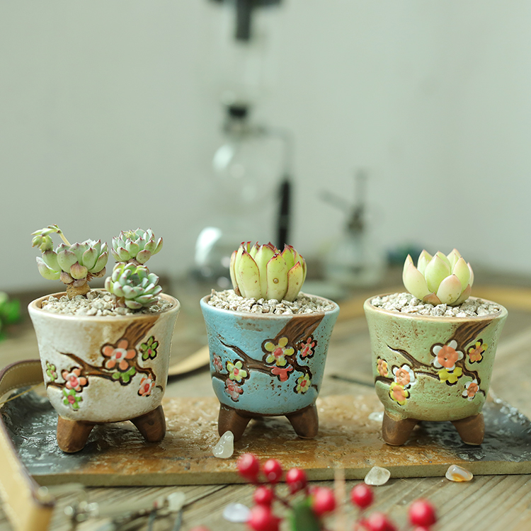 简约个性多肉植物花盆陶瓷透气手绘mini韩式粗陶拇指盆小号特价