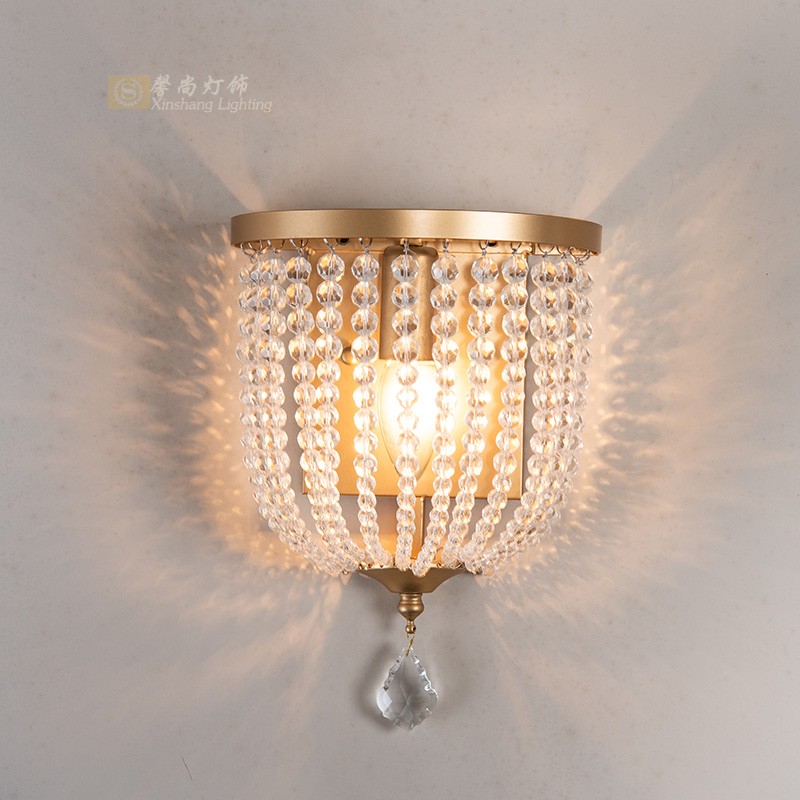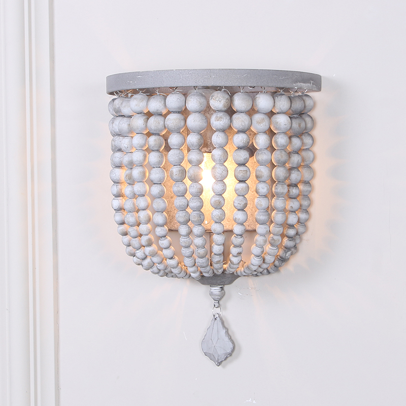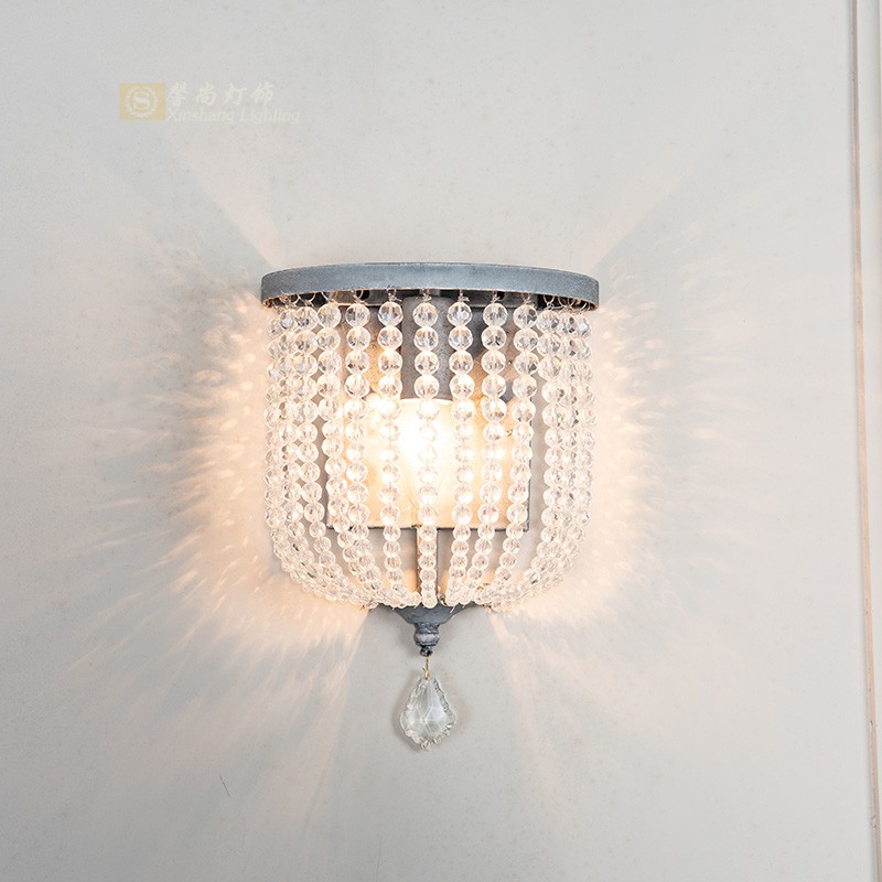 极速美式水晶壁灯卧室牀头灯摄影道具F复古木珠壁灯过道走廊镜前