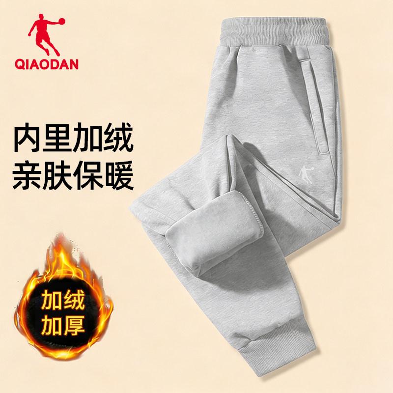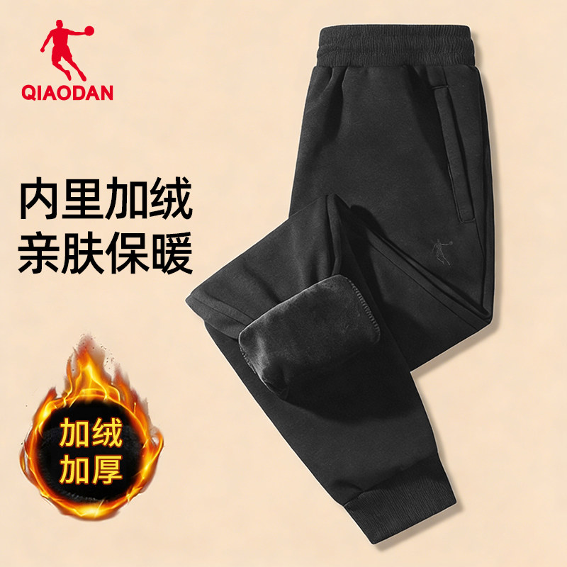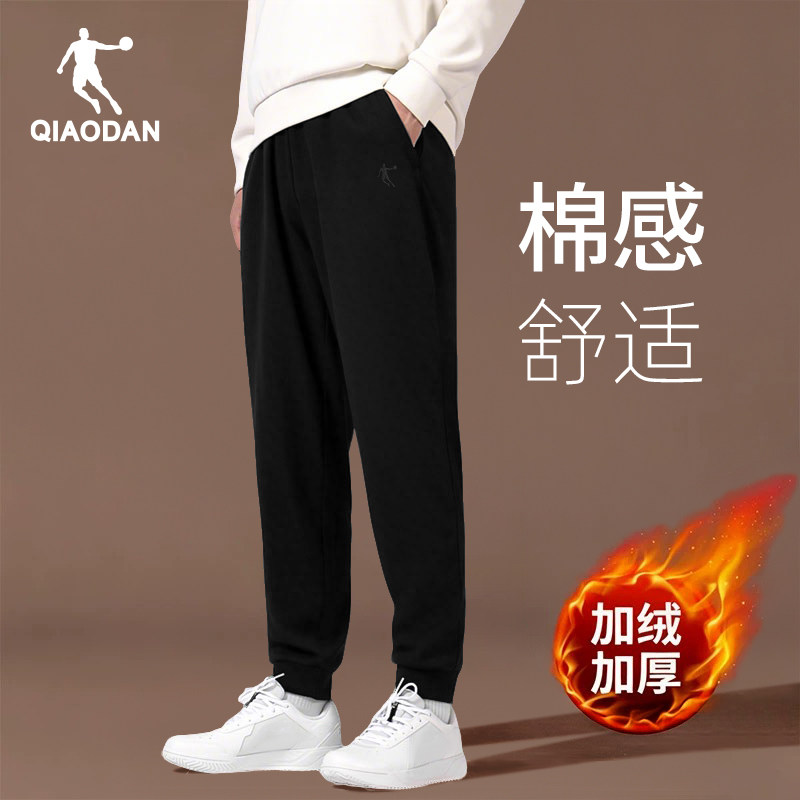 乔丹加绒裤子男秋冬季官方加厚保暖男裤束脚休闲长裤针织宽松卫裤
