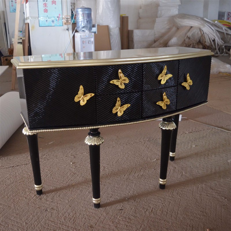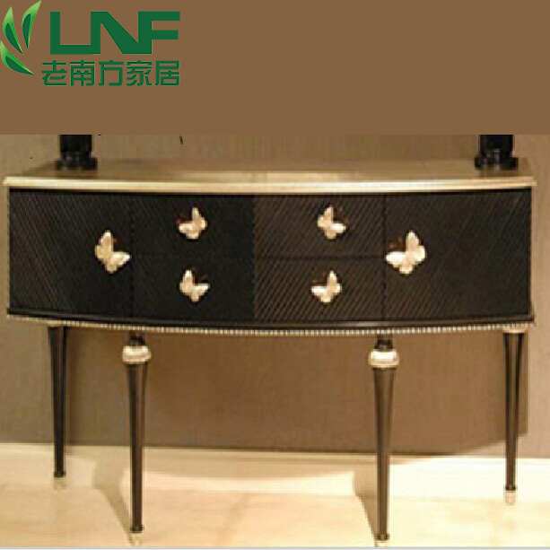 实木玄关柜欧式简约蝴蝶门厅柜橡木隔断柜鞋柜黑色银箔储物柜定制