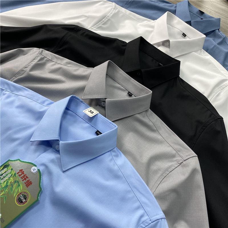 液态流动防皱免熨竹纤维 120支高端男士衬衫纯色修身休闲长袖衬衣