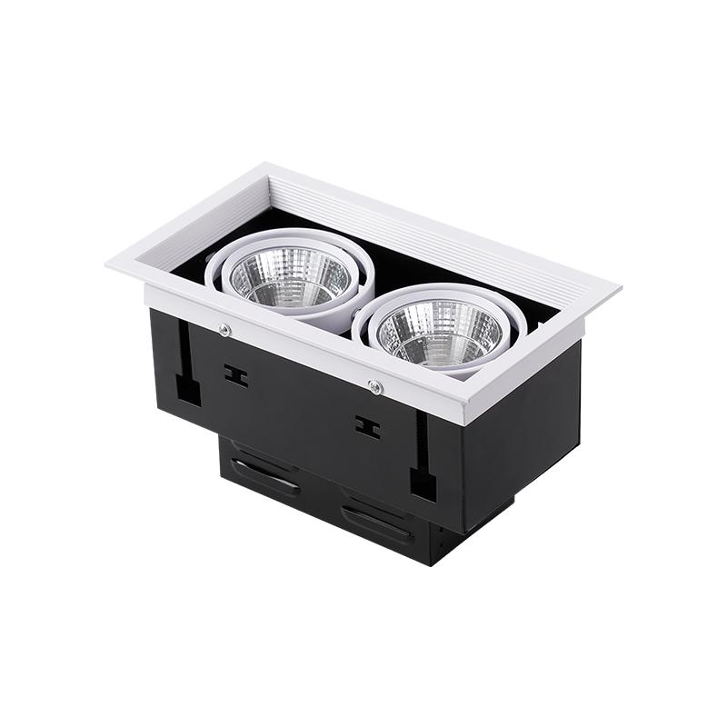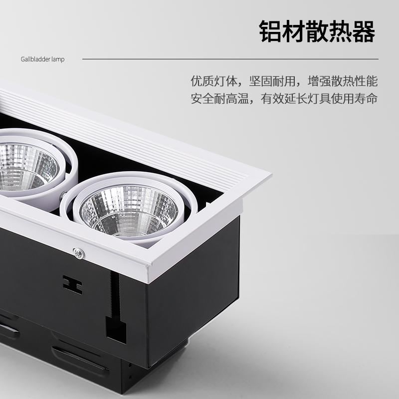 双头led斗胆灯单头三头方形射灯格栅筒灯COB豆胆灯嵌入式可调角度