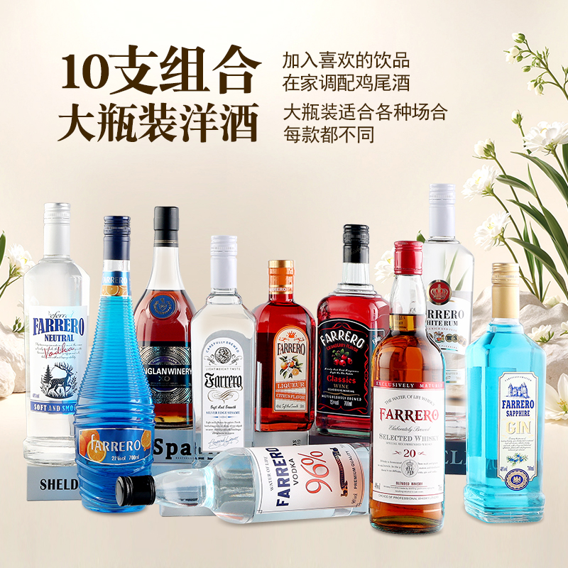 大瓶洋酒基酒调酒套餐鸡尾酒组合套装酒酒吧调酒威士忌白兰地金酒