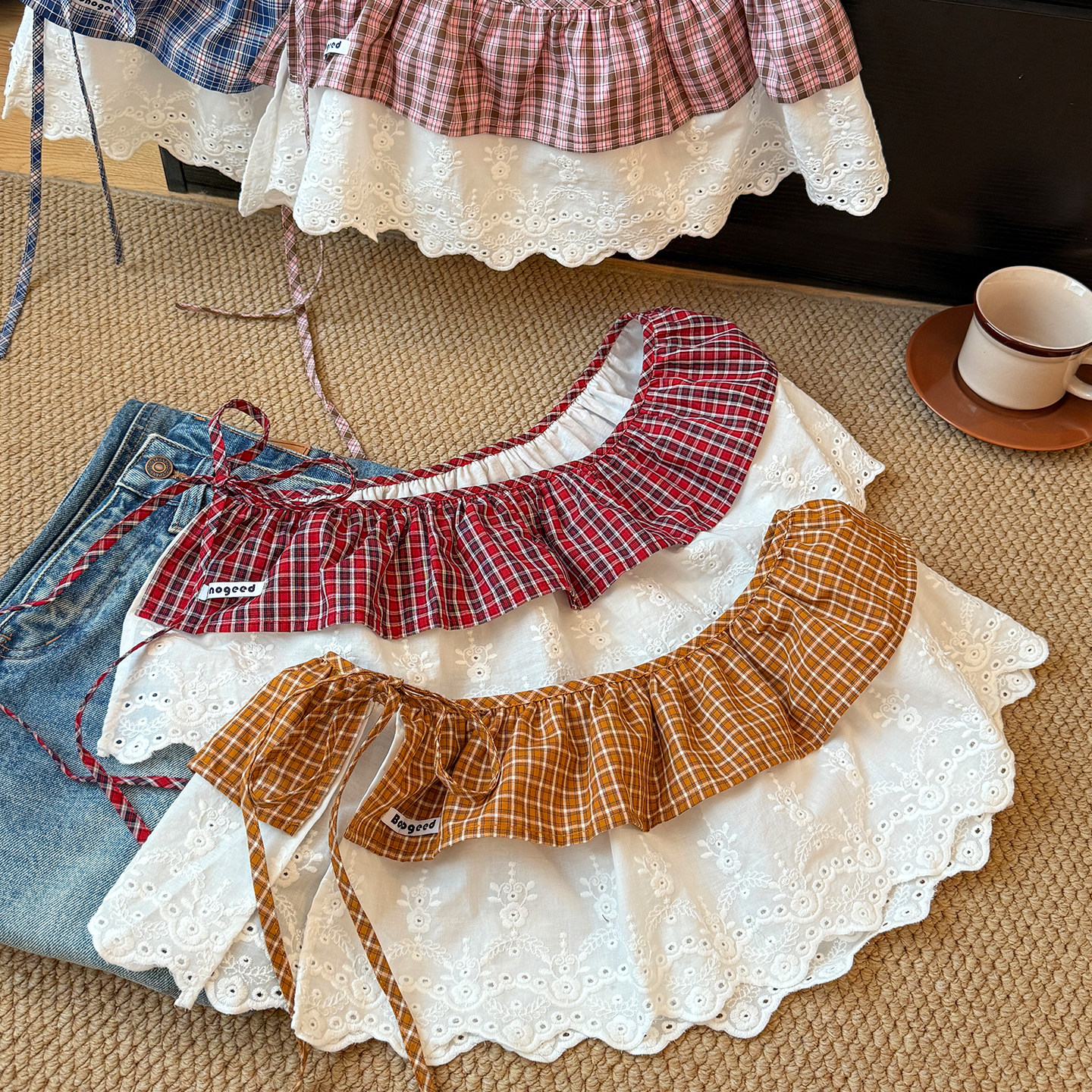 小清新格纹碎花边蕾丝屁帘女叠穿