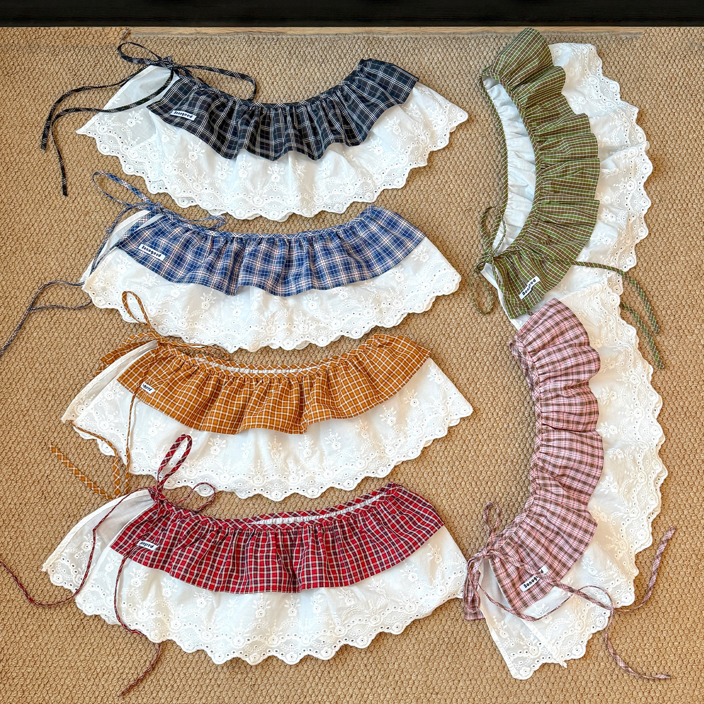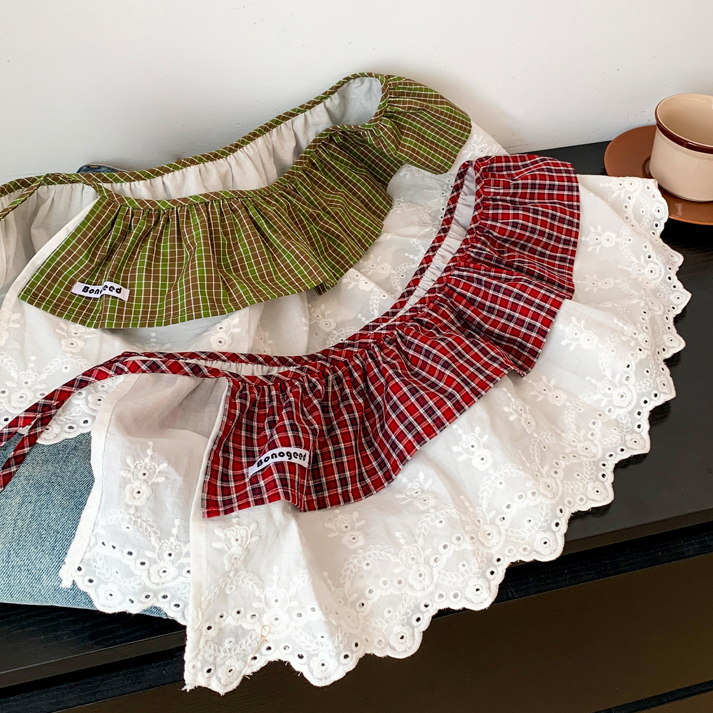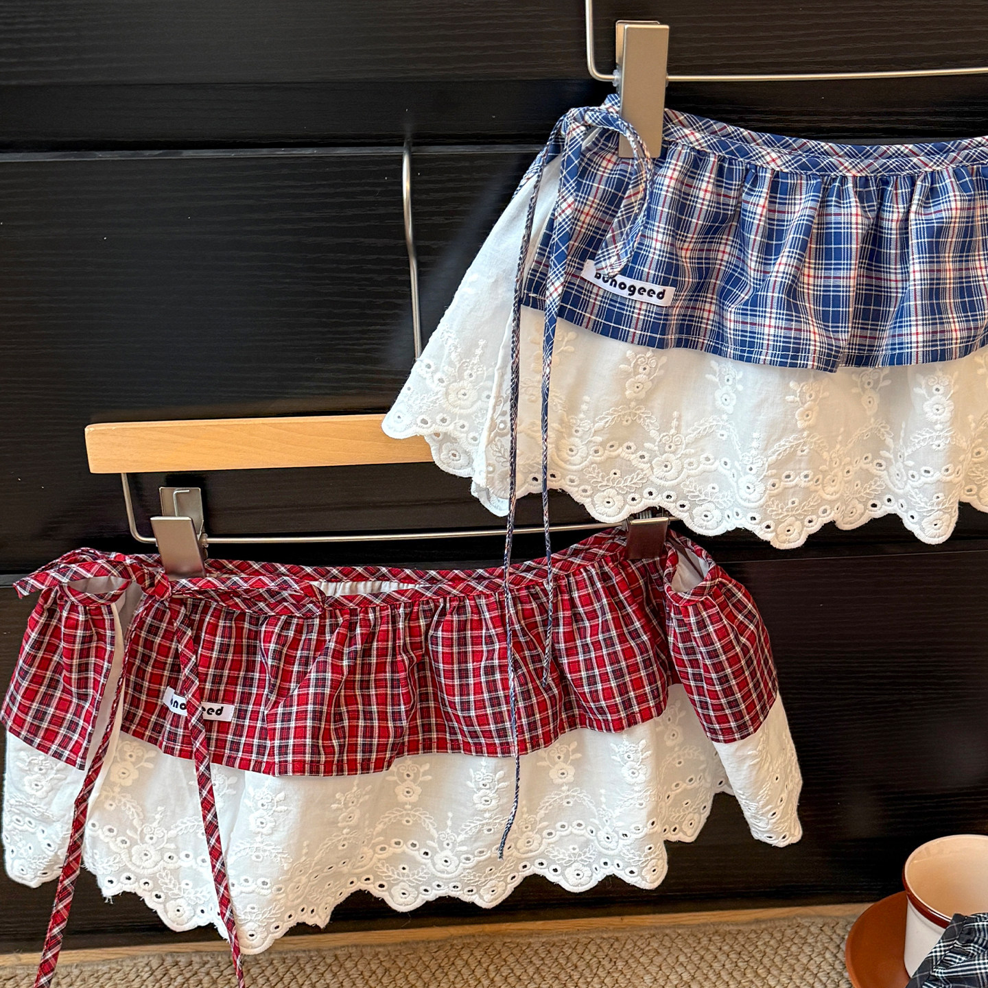 小清新格纹碎花边蕾丝屁帘女叠穿高级感时尚配裤子田园风半身裙子