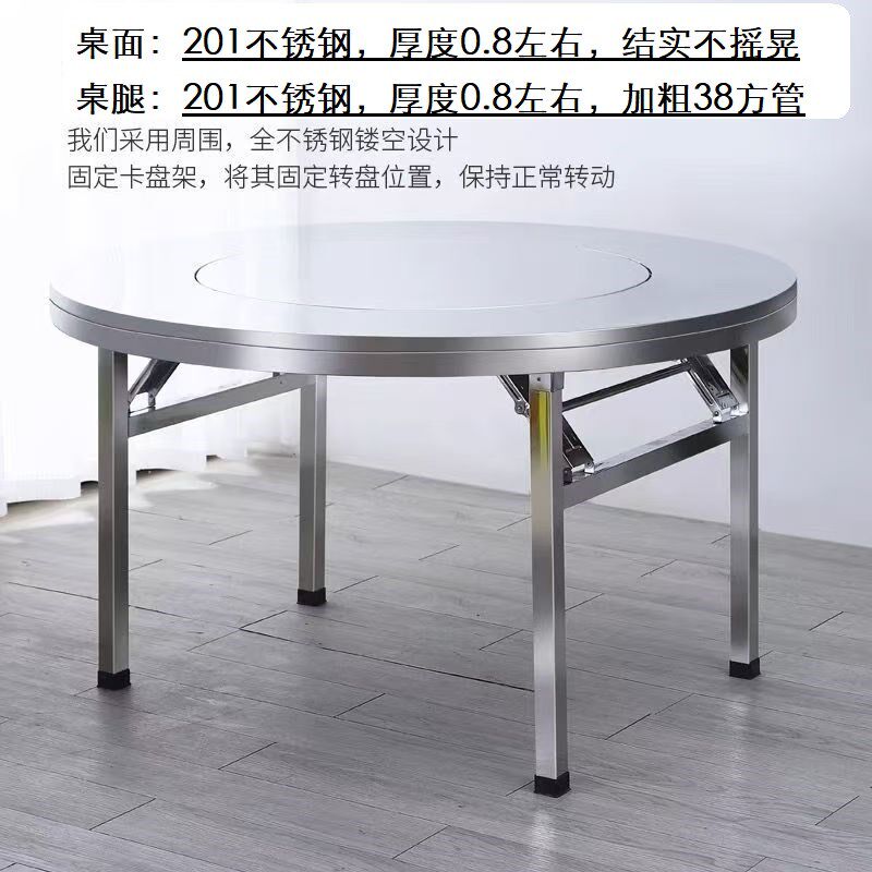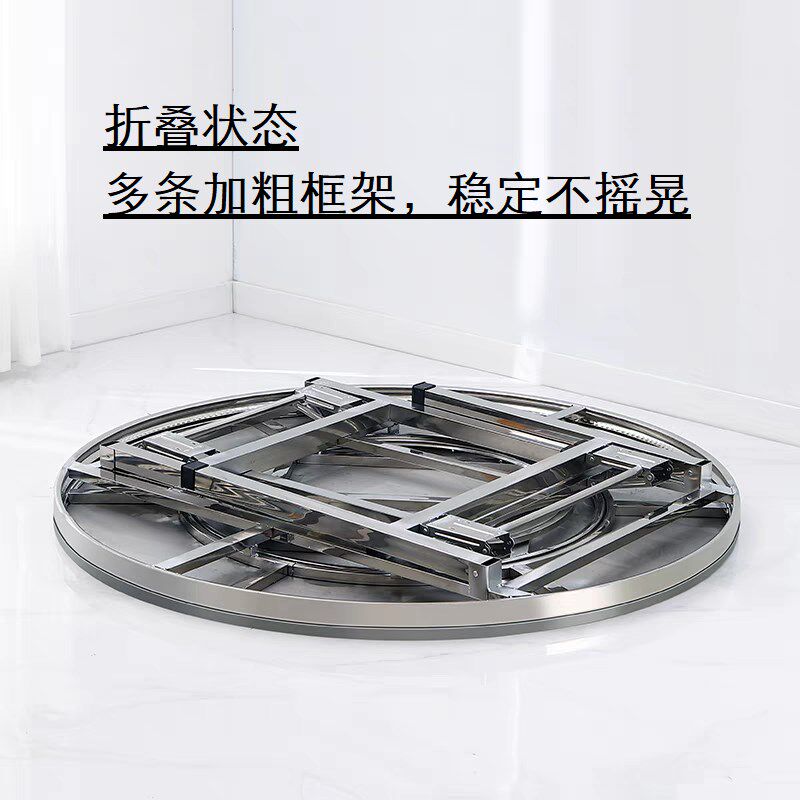 加厚不锈钢折叠桌内置转盘大圆桌家用吃饭餐桌饭店酒席地摊火锅桌