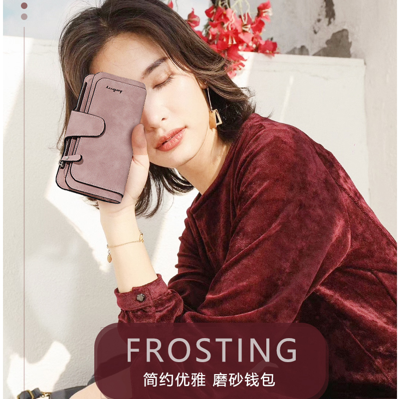 卡包女士精致高档软皮磨砂钱包女长款多卡位折叠卡包钱包一体包女