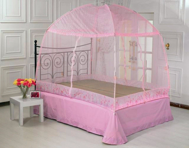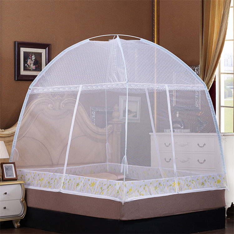 三开门加高加密加厚家用带防蚊布层蒙古包蚊帐有底坐床式有拉链