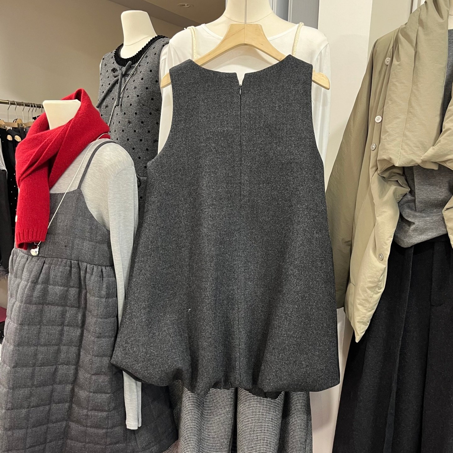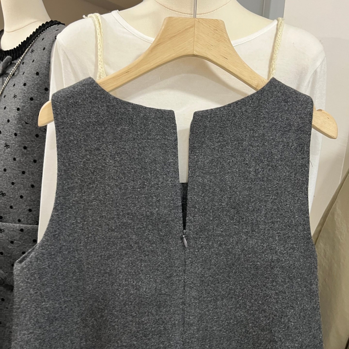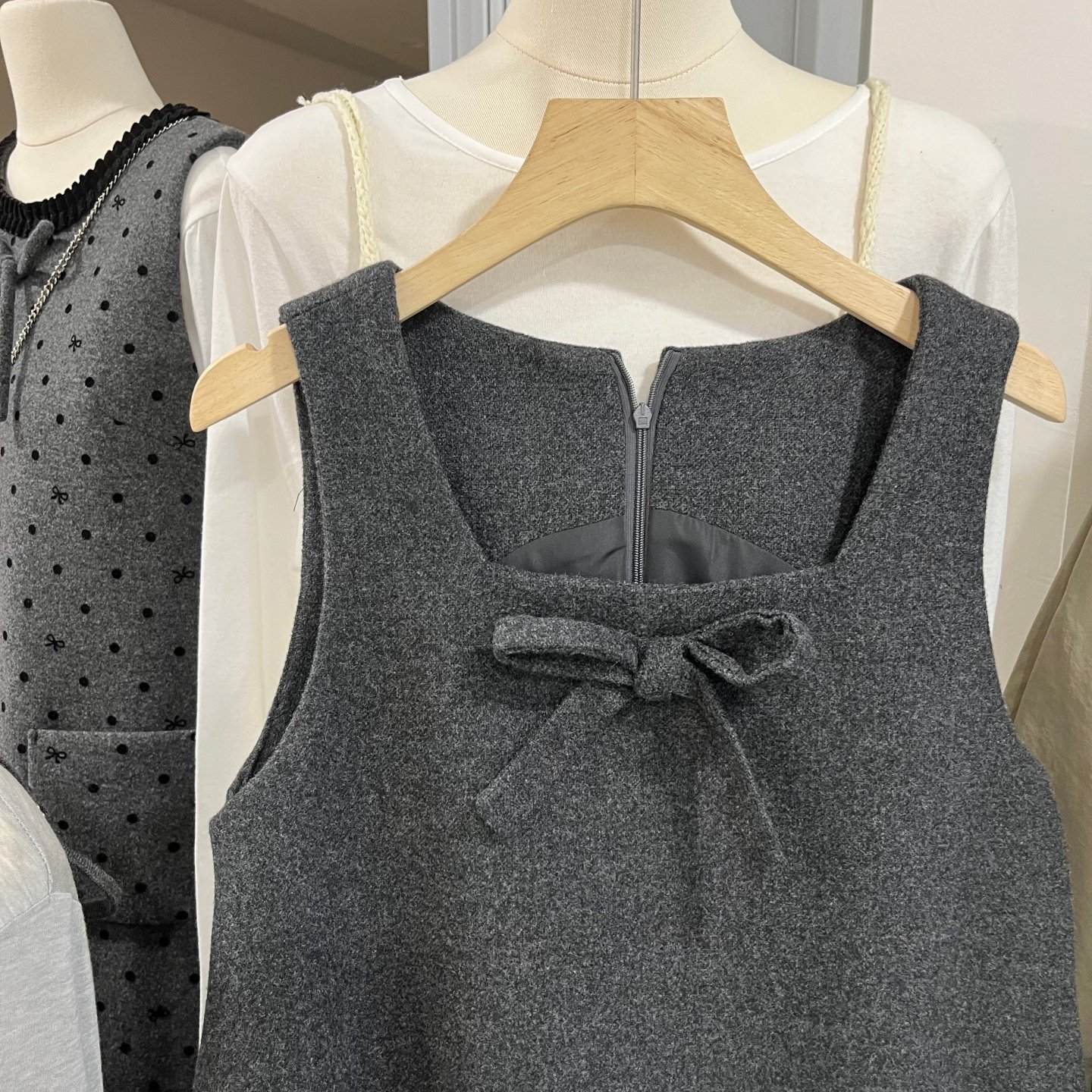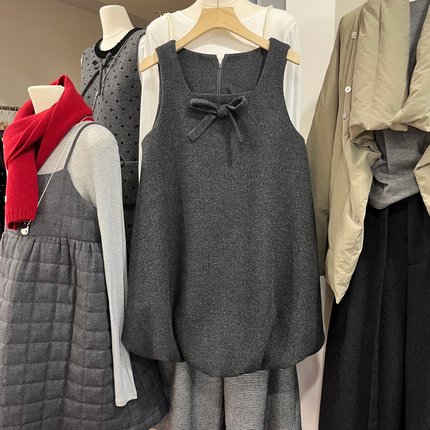 2025冬季新款韩版百搭显瘦花苞连衣裙无袖短款蝴蝶结羊毛呢背心裙