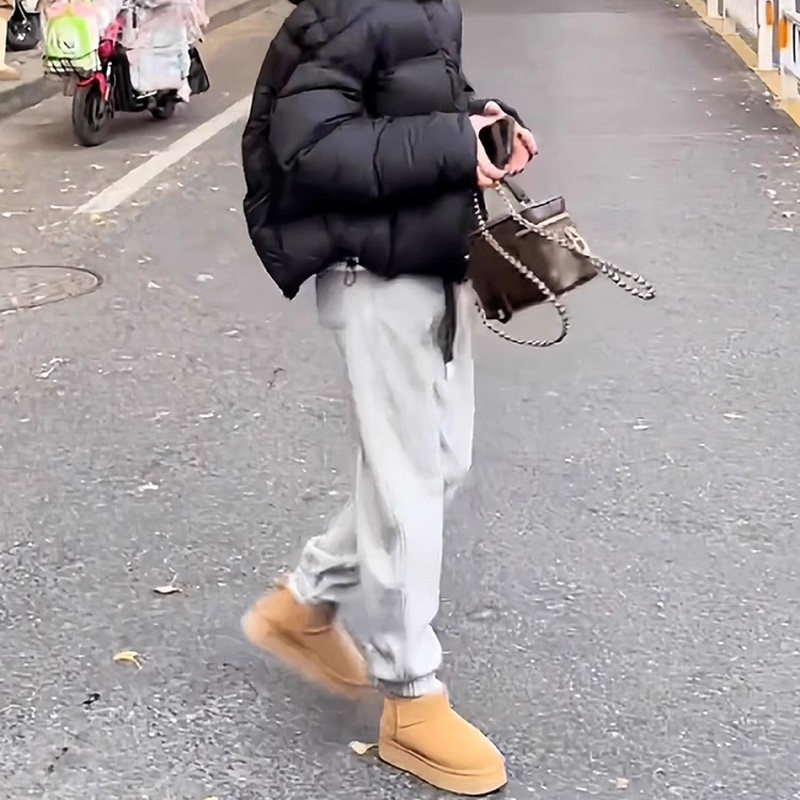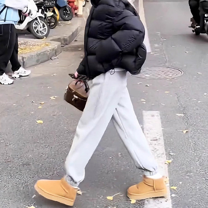 145小个子运动裤女秋冬季加绒卫裤七分休闲裤高腰显瘦束脚裤子xxs