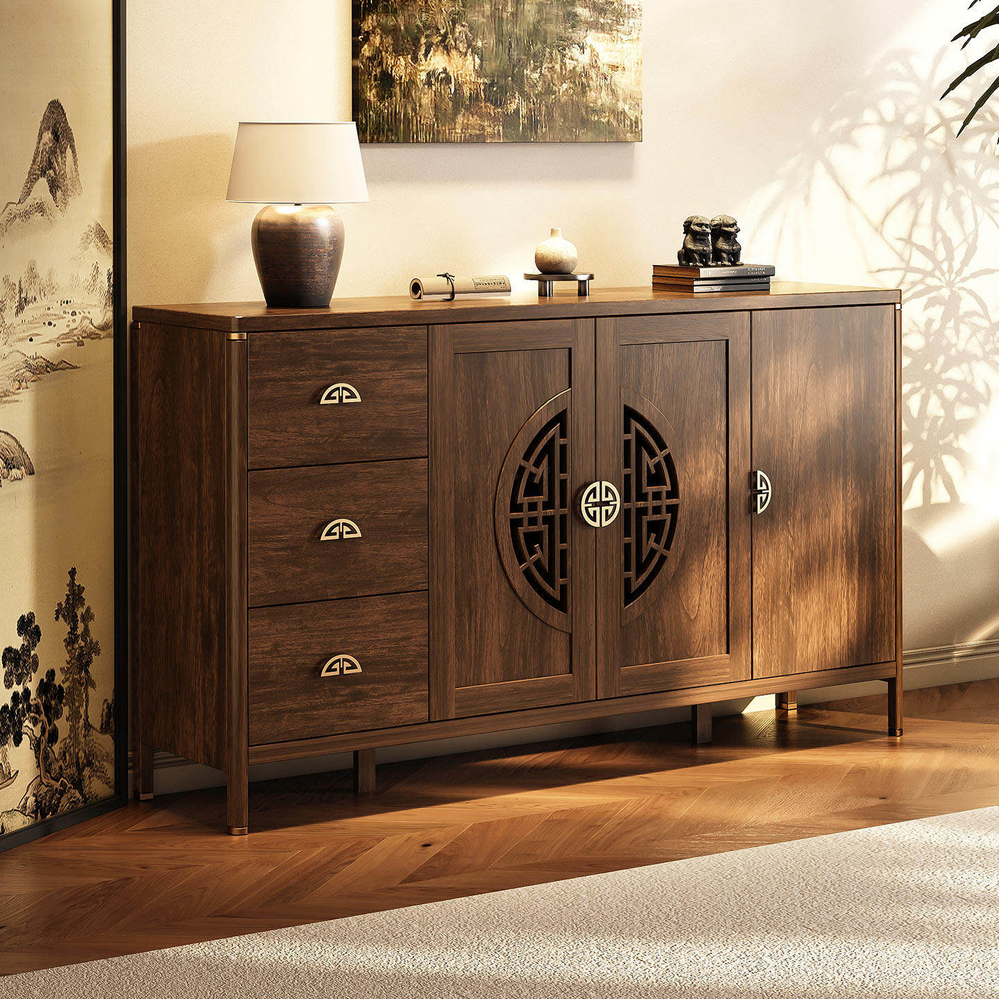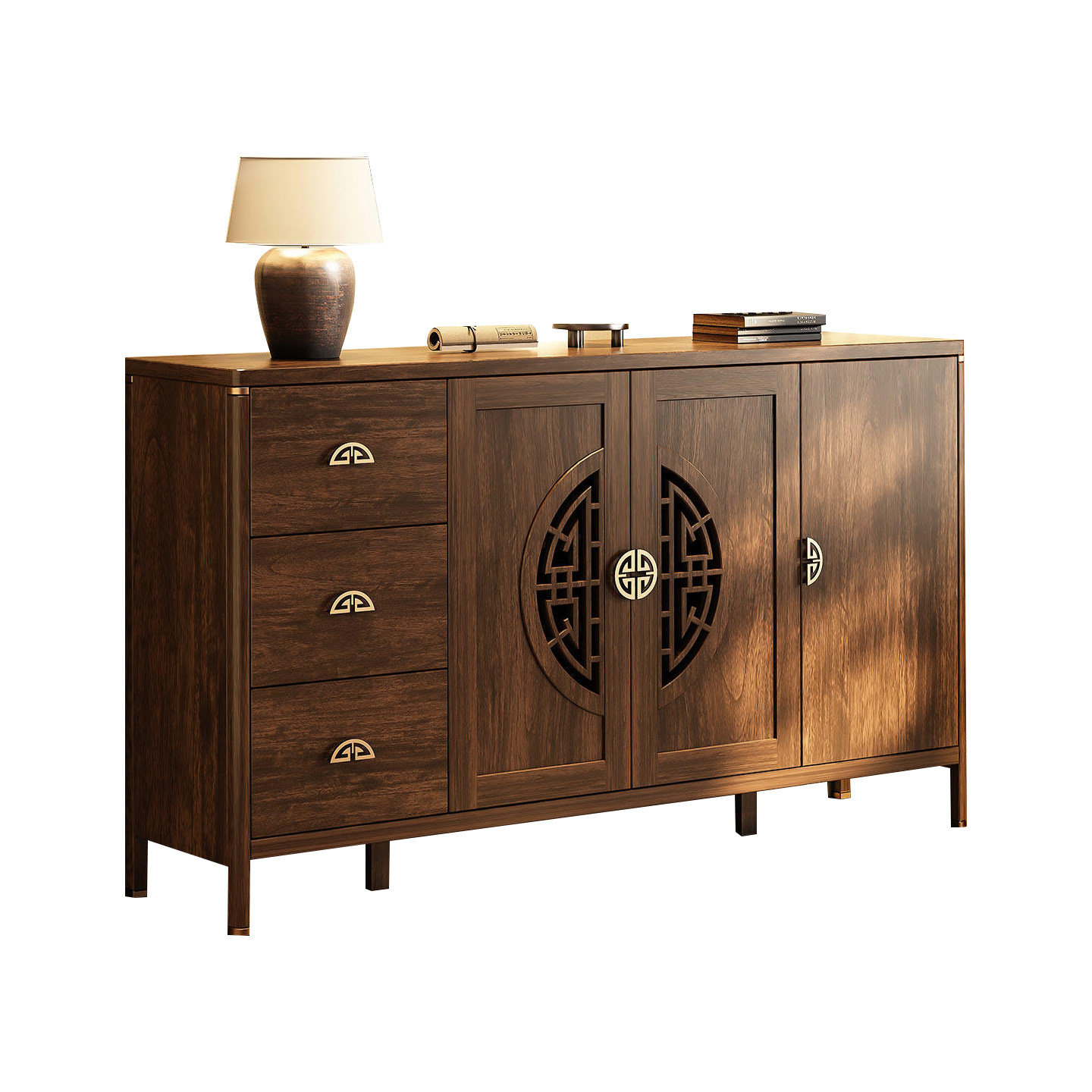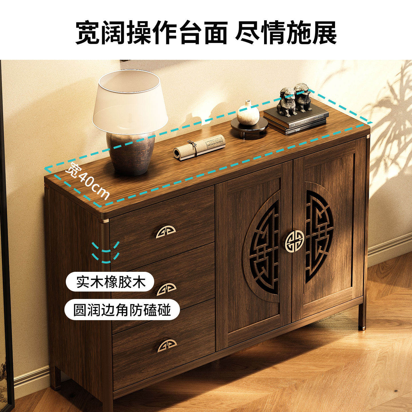 新中式实木靠墙餐边柜客厅茶水柜