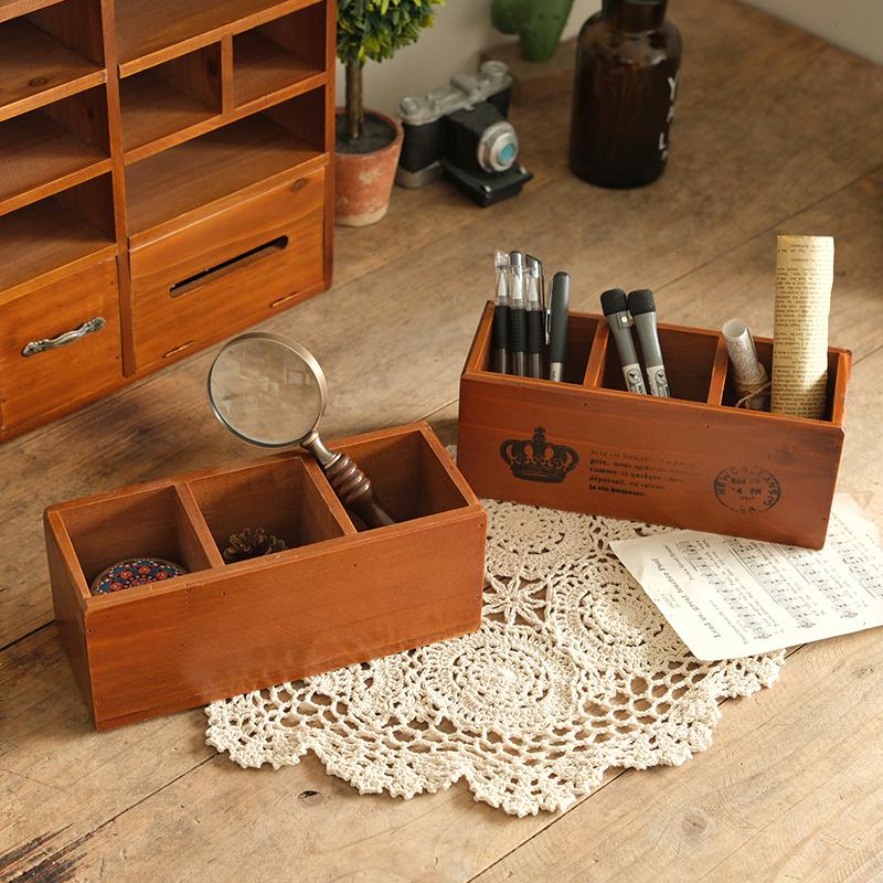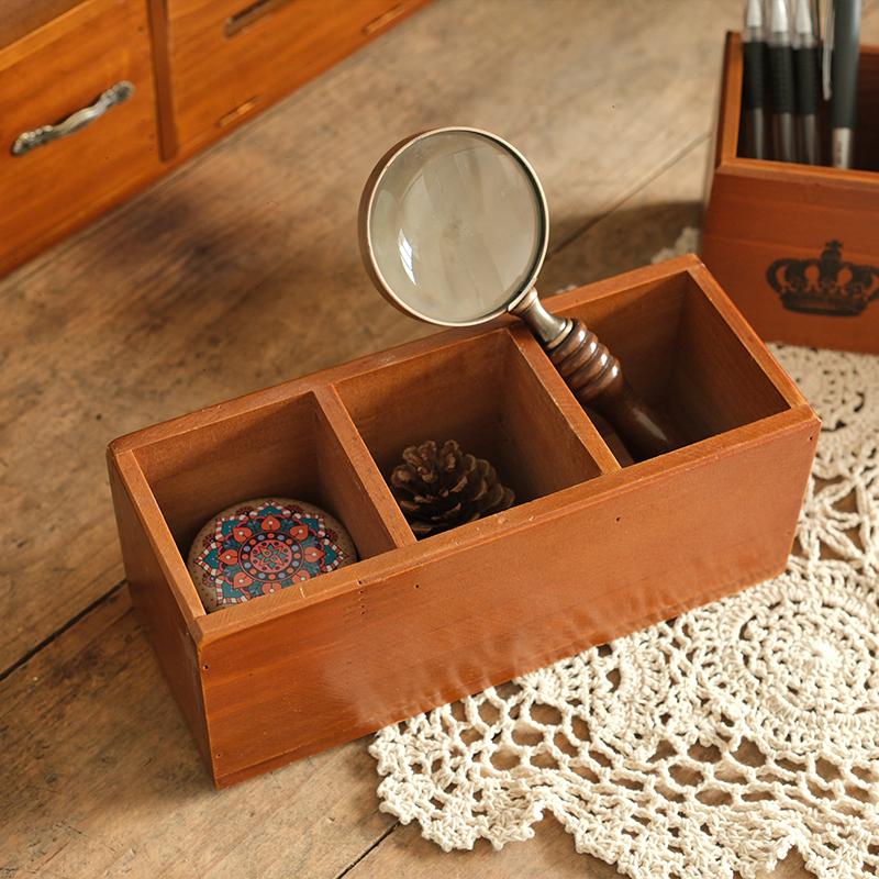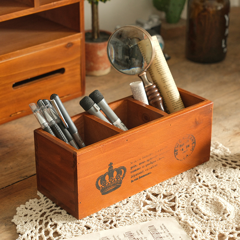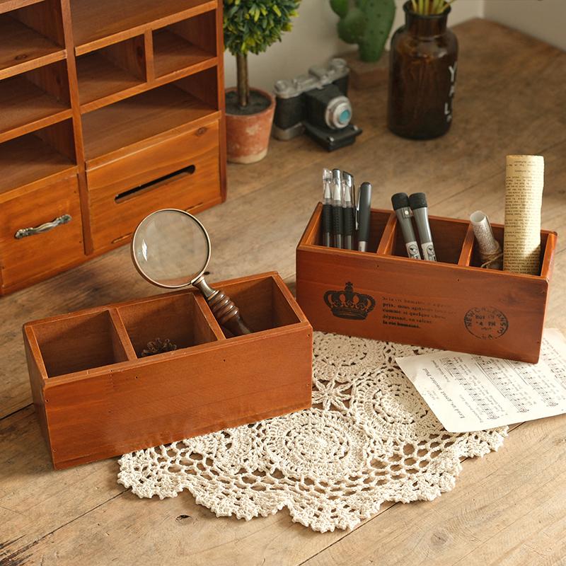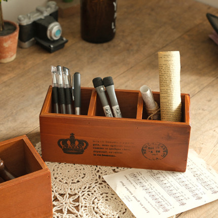 木质小盒子办公桌置物架遥控器文具桌面收纳盒书桌铅笔化妆刷笔筒