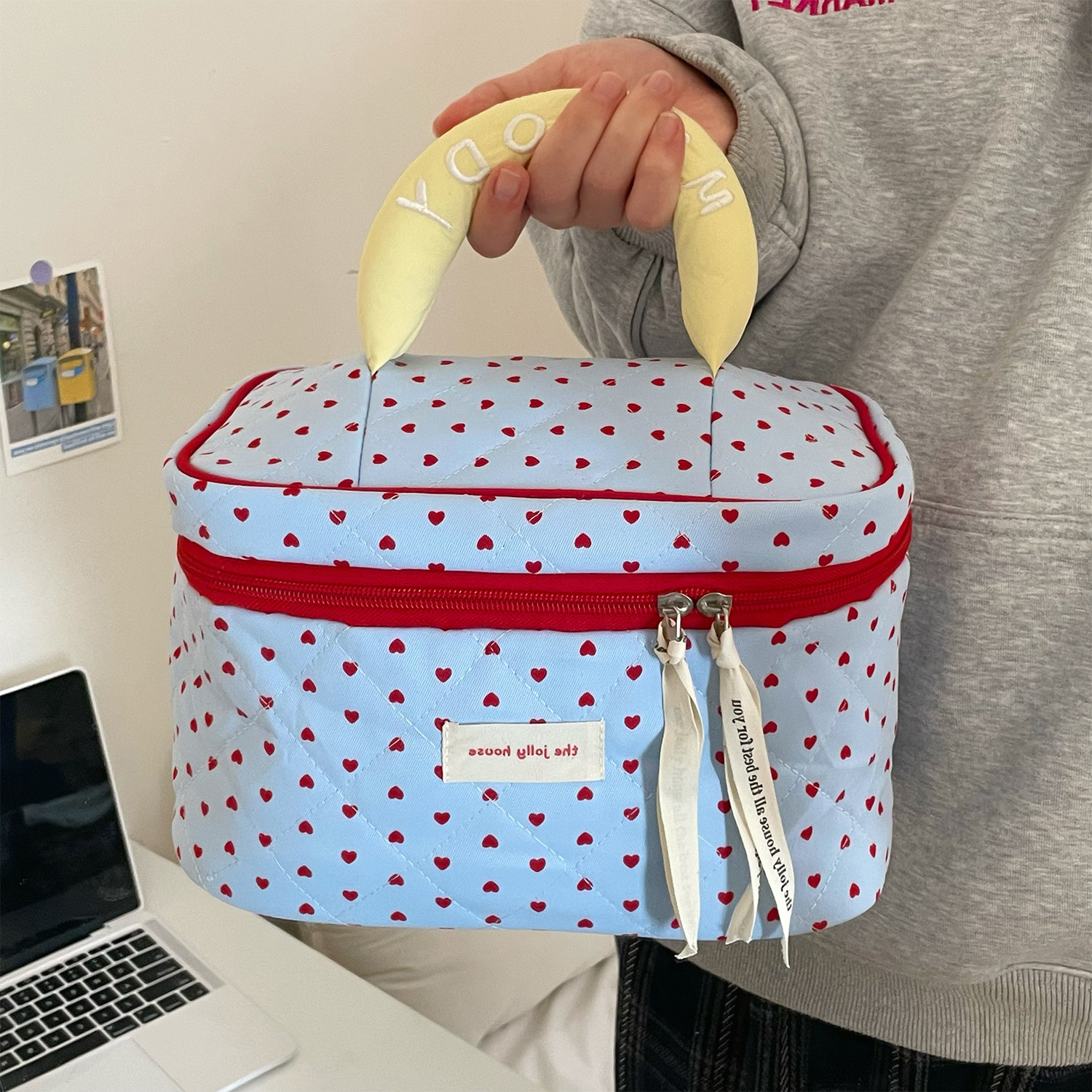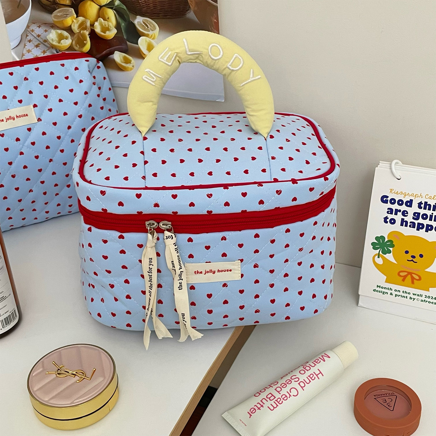 蓝色爱心化妆包女2025新款大容量化妆刷包笔袋旅行便携分区收纳包