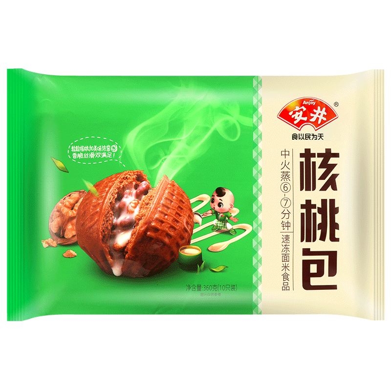 安井核桃包早餐半成品流沙包子加热即食速食速冻蒸品儿童早点食材