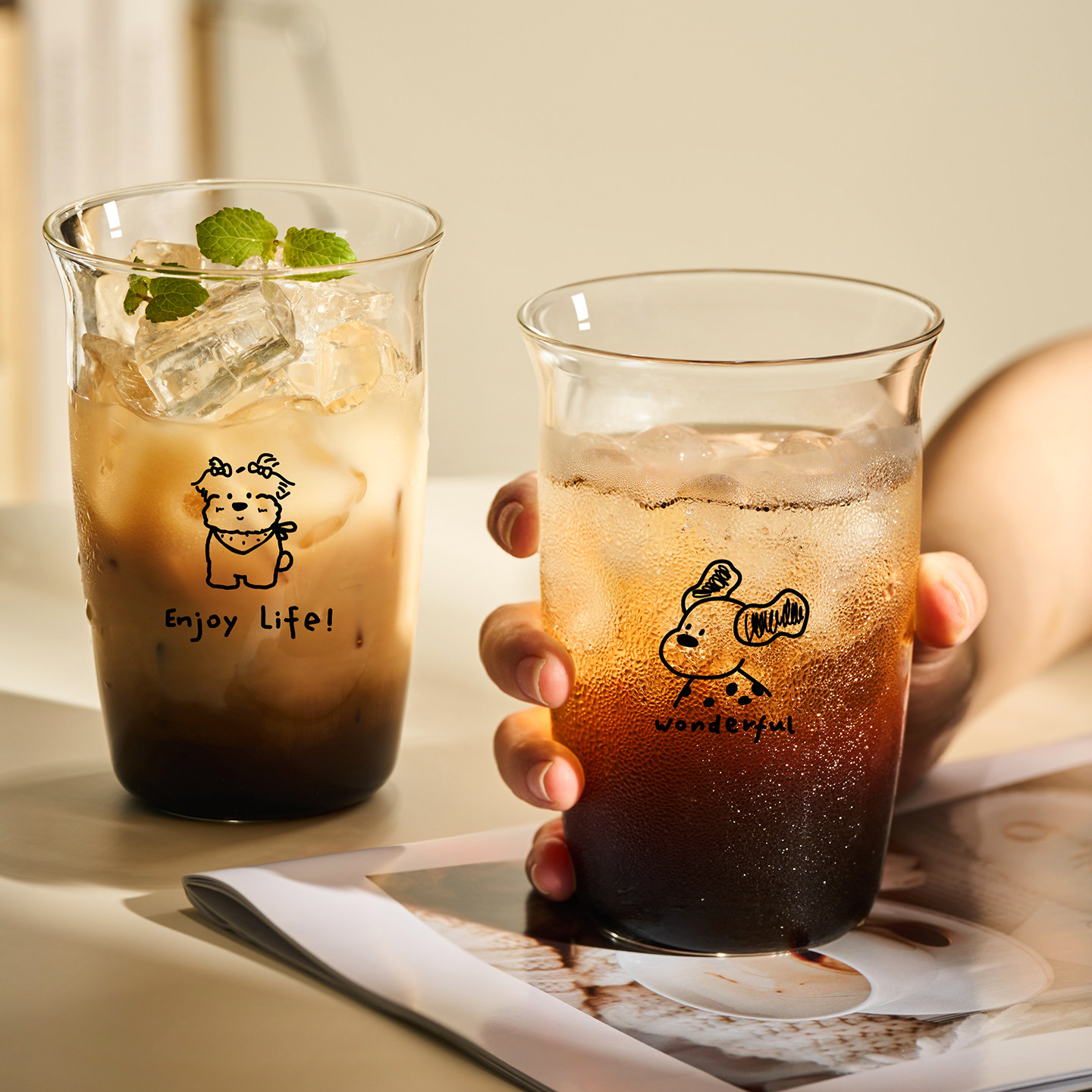 捷安玺高颜值咖啡杯女士家用酒杯拿铁杯耐高温水杯子高硼硅玻璃杯