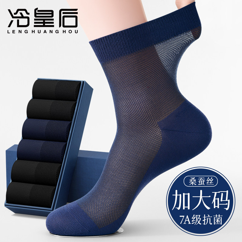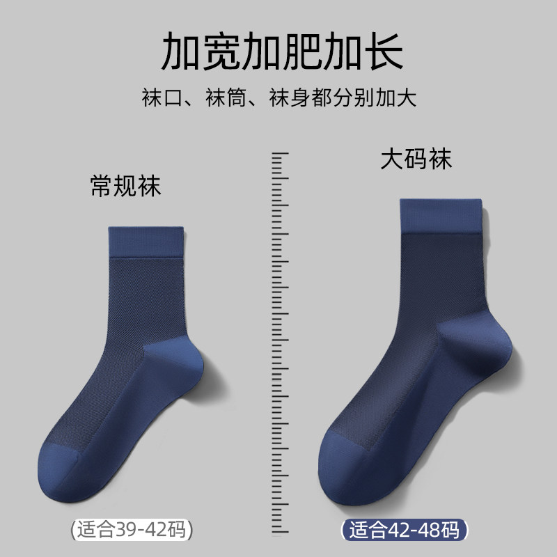 桑蚕丝袜子大码男士夏季薄款防臭吸汗中筒加肥冰丝松口网眼长筒袜