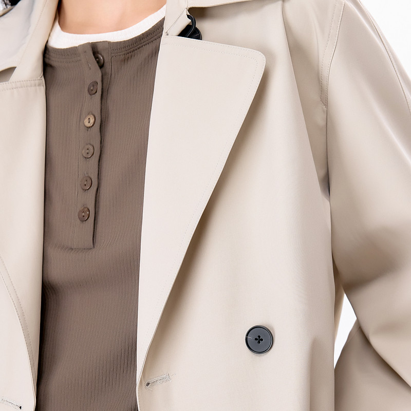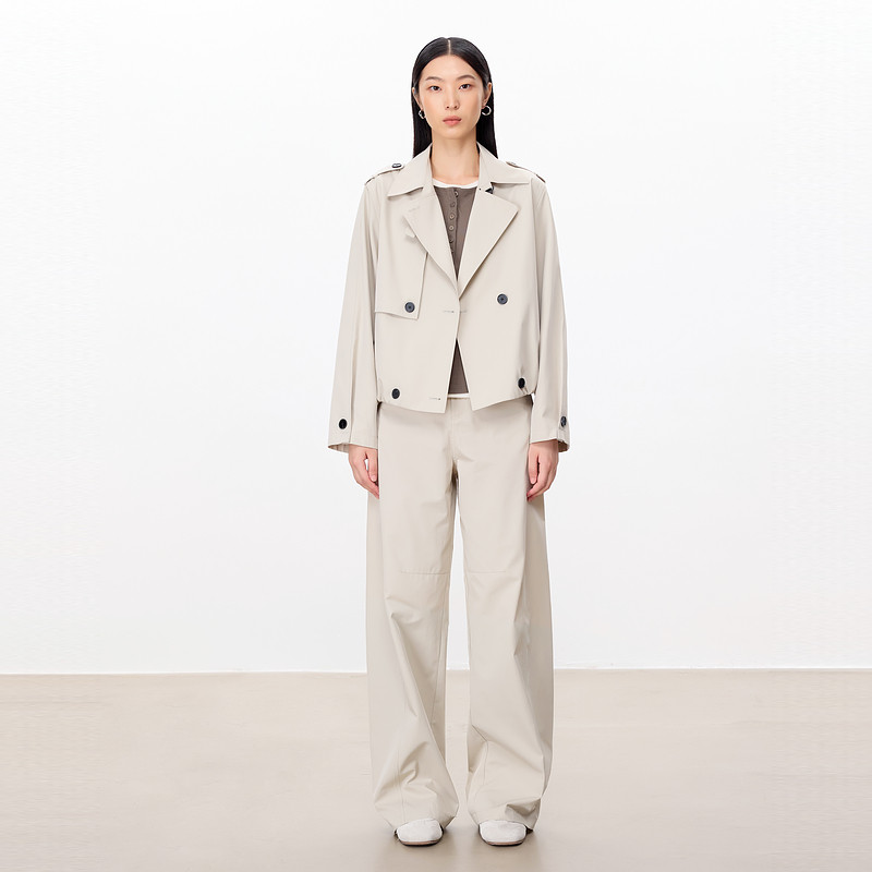 水云间女装 时尚翻领宽松弹力下摆收腰短款风衣外套2025秋季新款