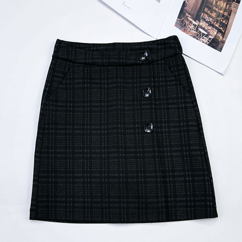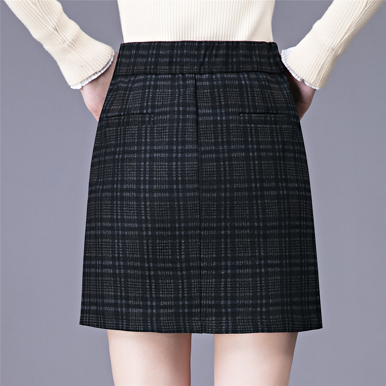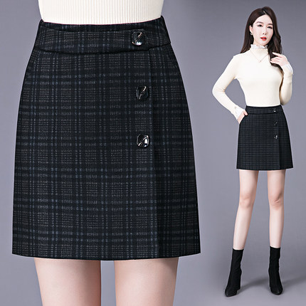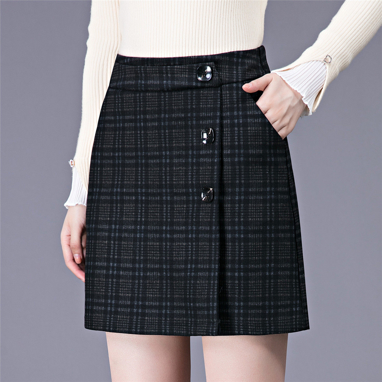 格子短裙女2025秋冬款高腰大码显瘦包臀a字裙防走光半身裙一步裙