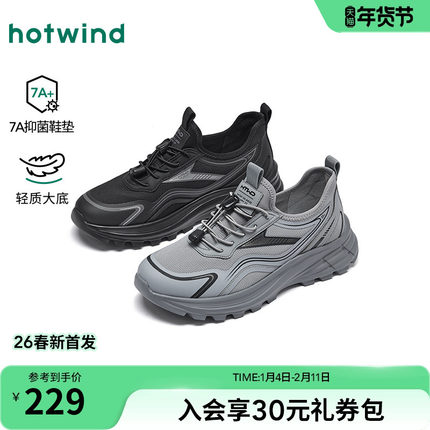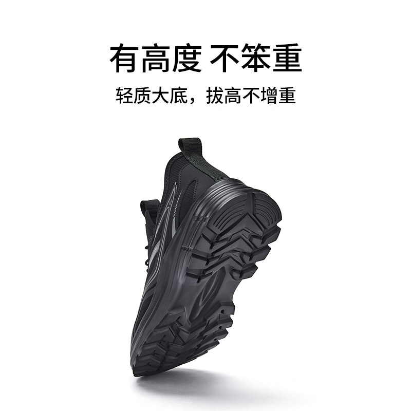 热风男鞋2026年春季新款男士运动户外厚底休闲鞋时尚黑色慢跑鞋子