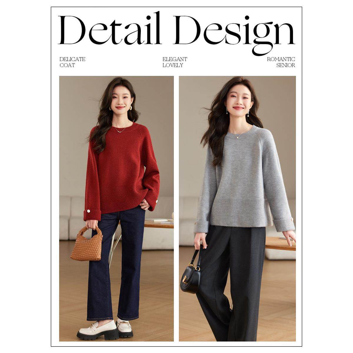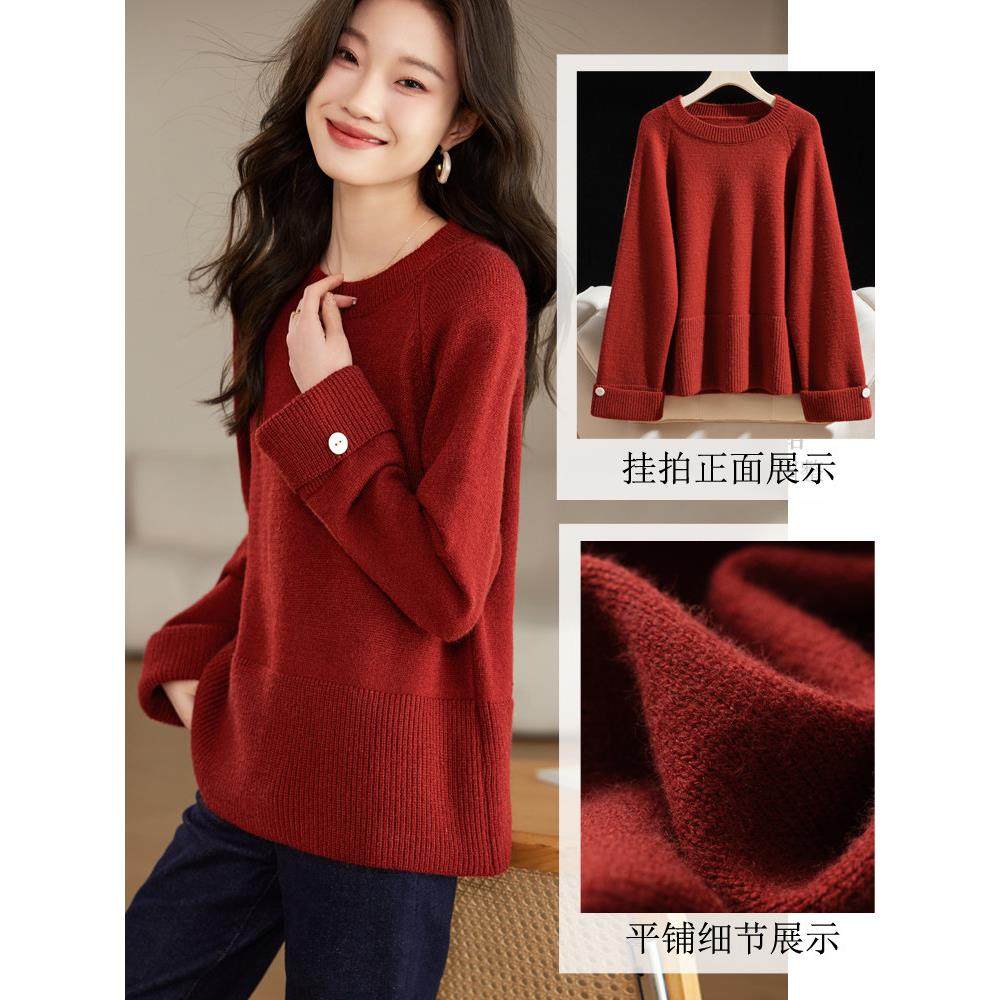 采购产品2025新秋季服装,时尚的樱桃红毛衣,出生年份的白色套头