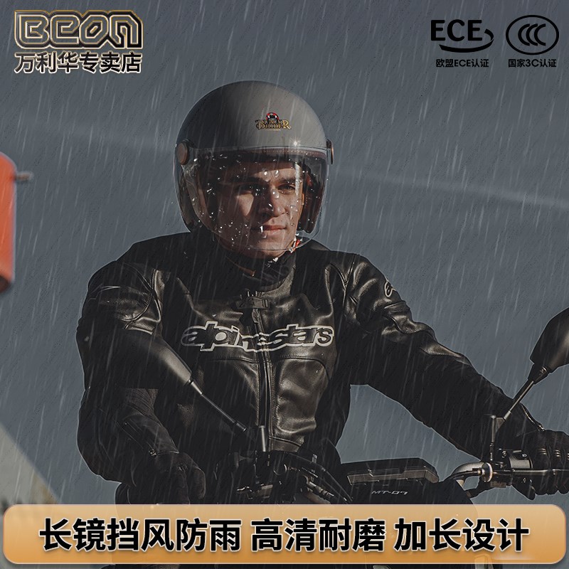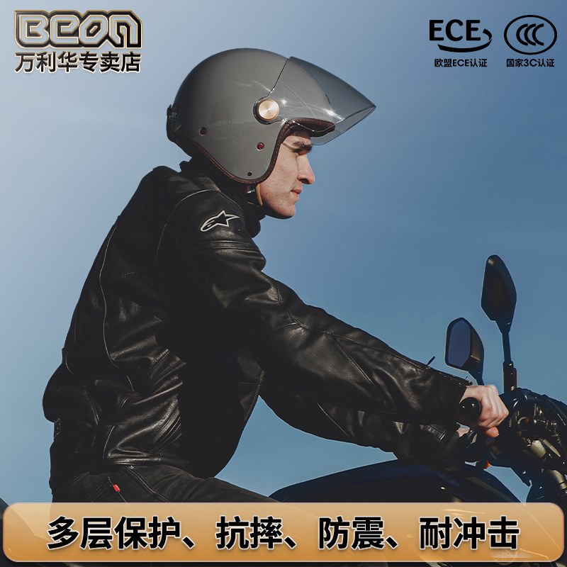 BEON摩托车复古轻头盔男女电z动车机车四分之三半盔碳纤维冬天保