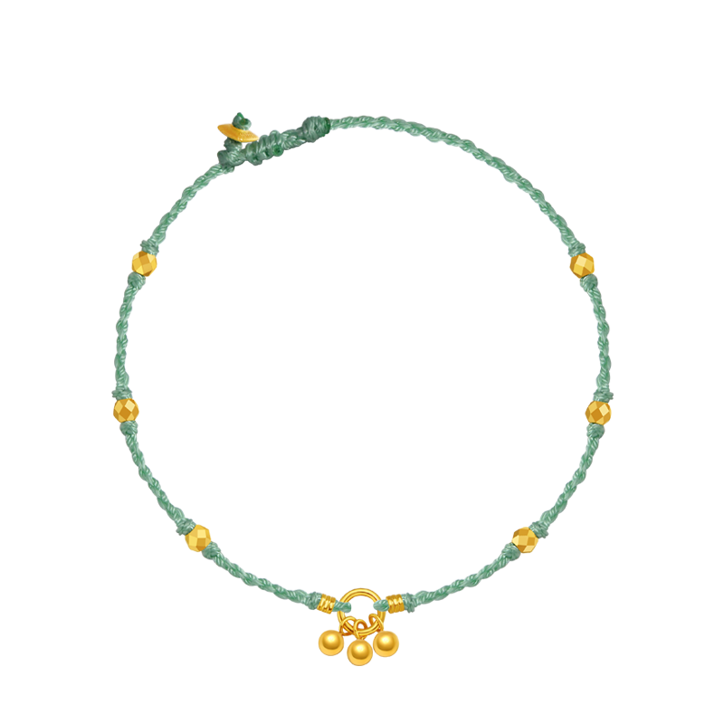 老庙黄金足金999小金珠手链四方来财六六大顺小清新色彩时尚正品