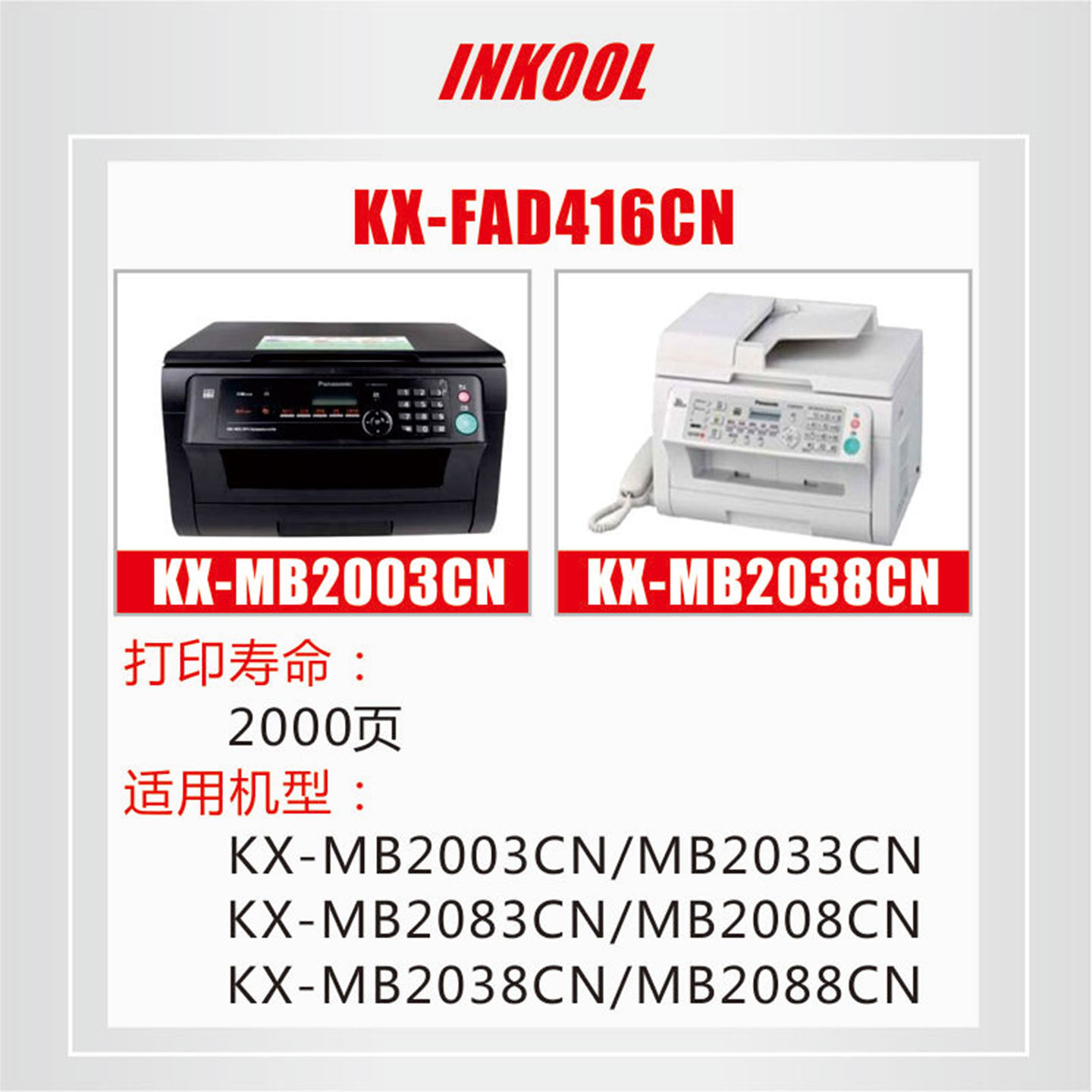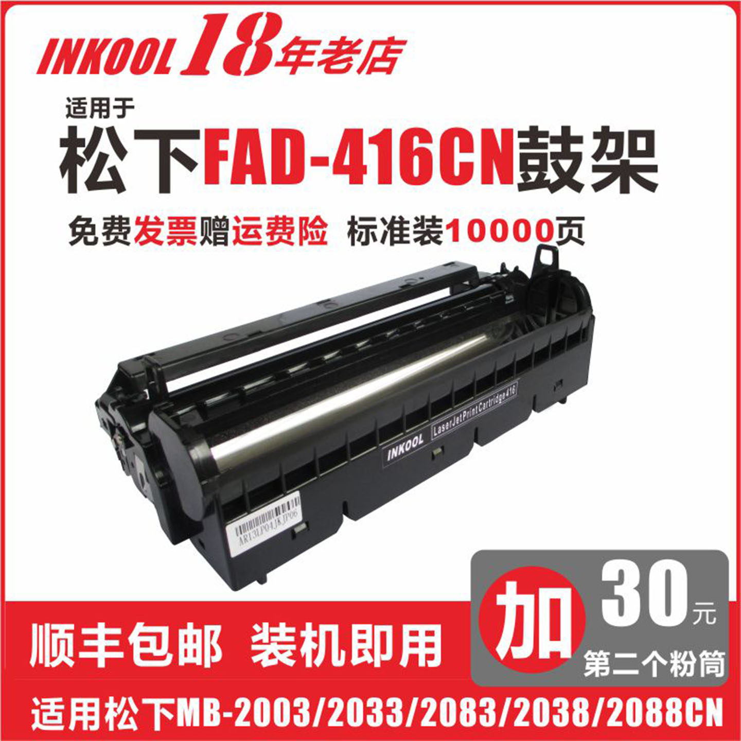 【顺丰包邮】INKOOL适用松下KX-FAD416CN硒鼓Panasonic KX-MB2033CN 2008 2003CN打印机 传真机鼓架KX-FAC415