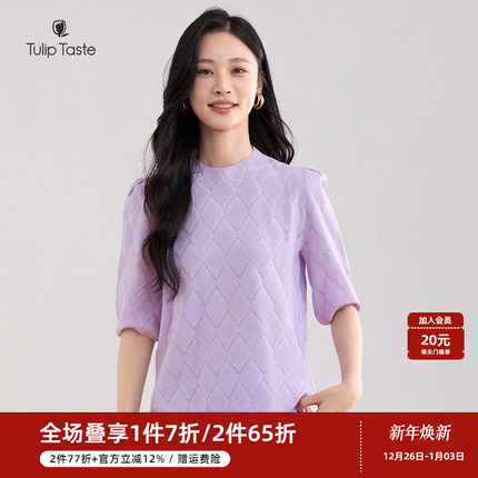 郁香菲圆领针织衫女气质通勤秋季时尚菱形烫钻套头打底衫中袖上衣
