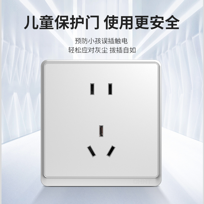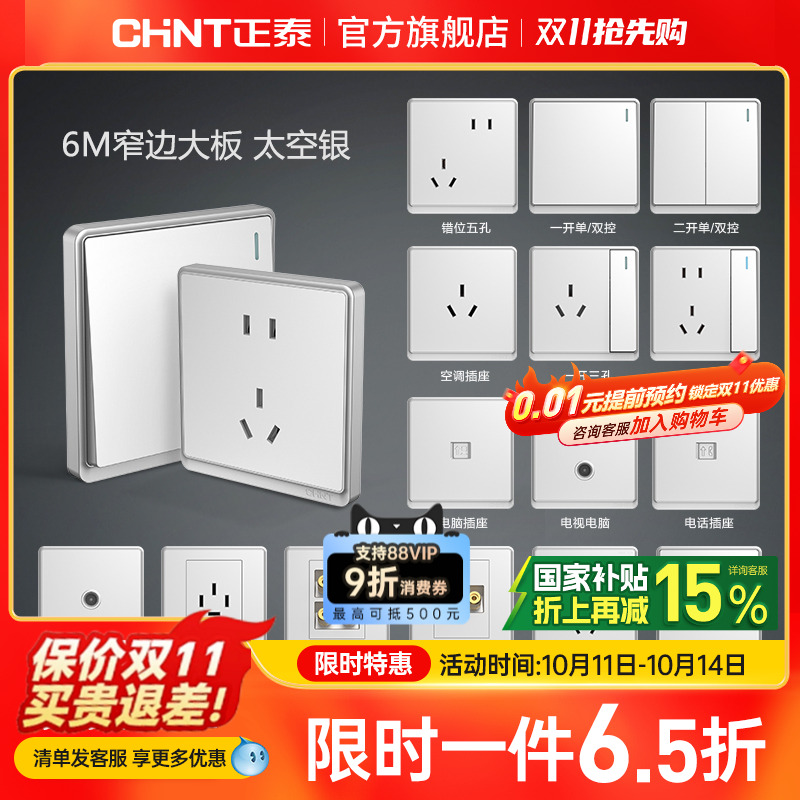 正泰开关插座面板86型usb一开5五孔家用暗装16a空调墙壁太空银6M