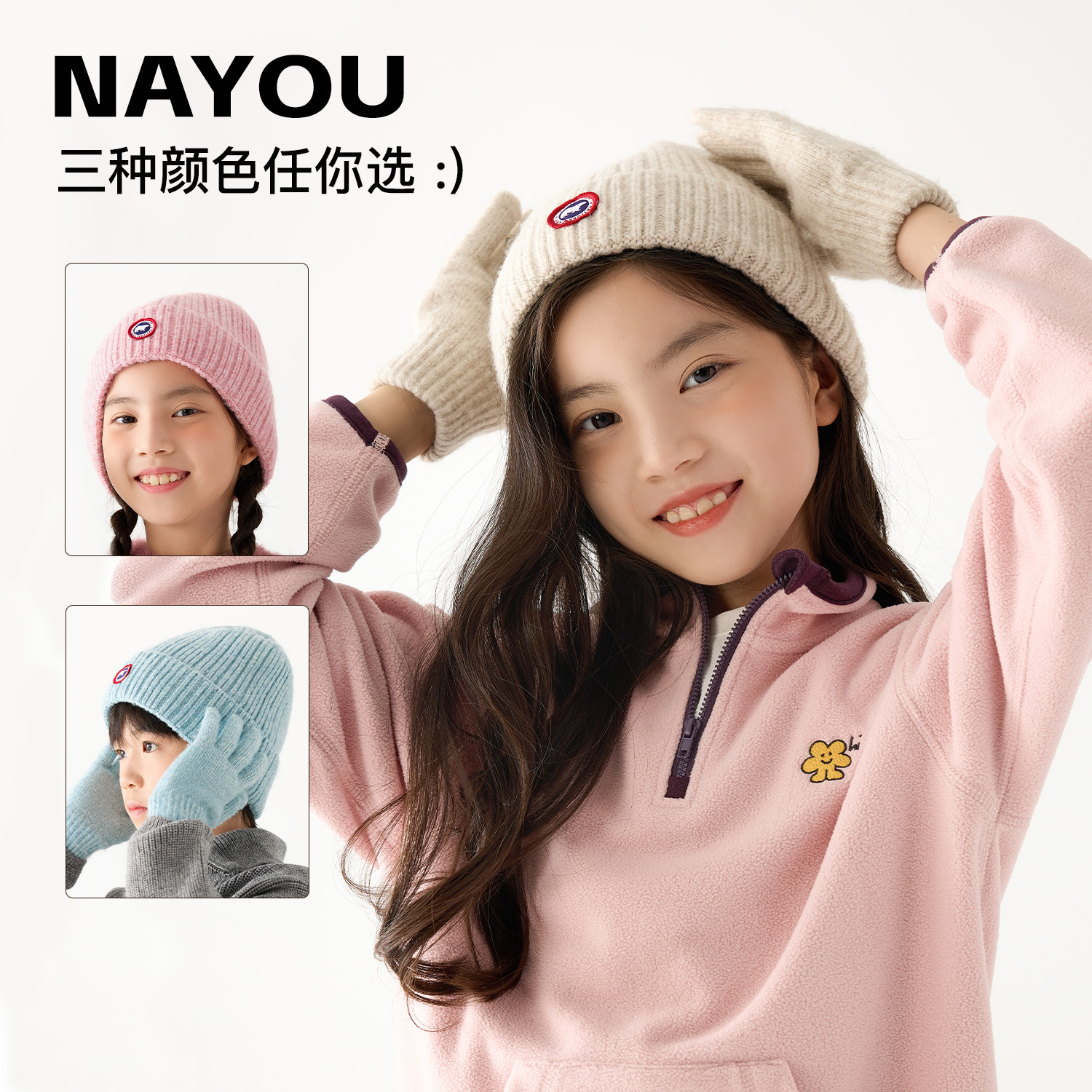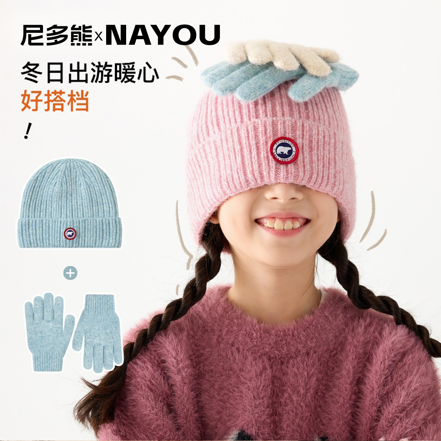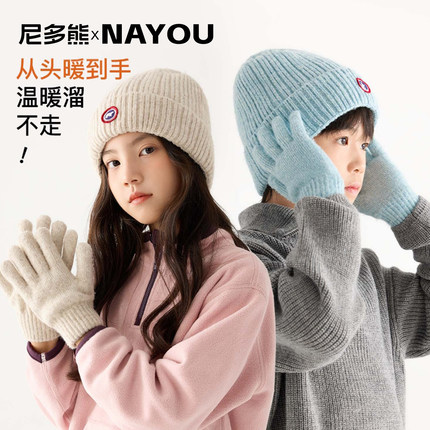 尼多熊X纳柚儿童帽子秋冬男女宝宝针织毛线帽中大童保暖分指手套