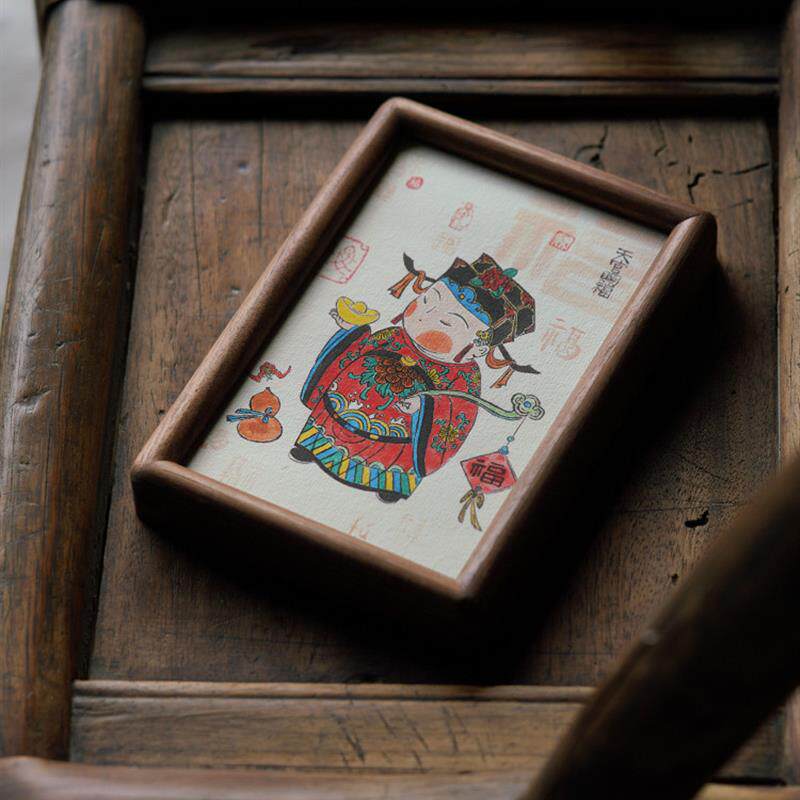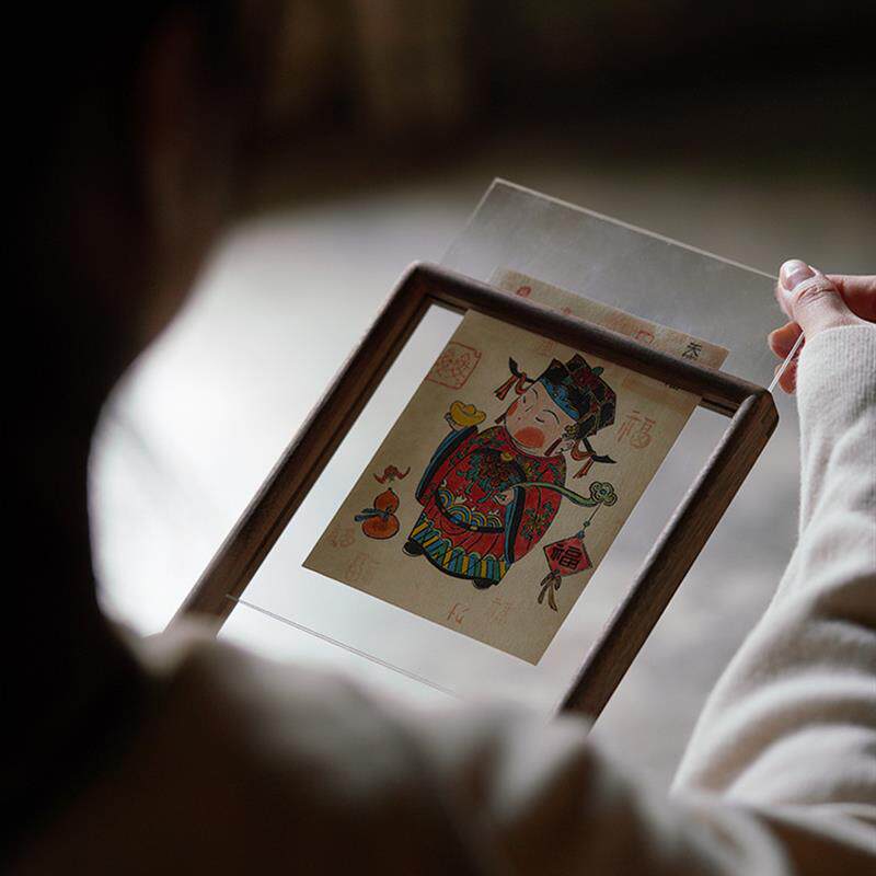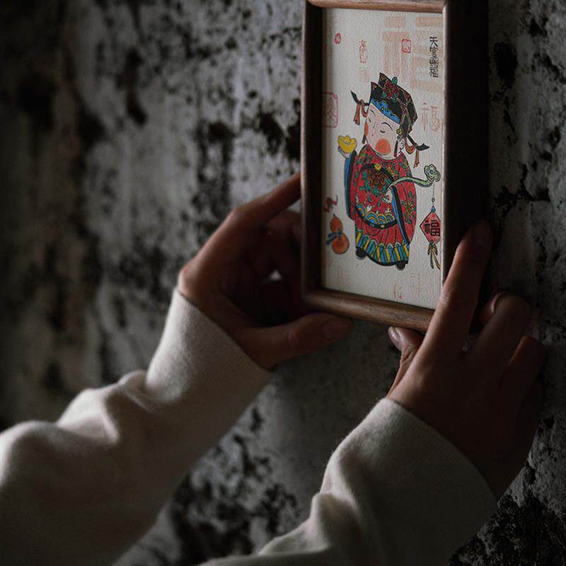 优选黑胡桃实木天官赐福相框摆台展示柜客厅玄关墙壁装饰年画木质