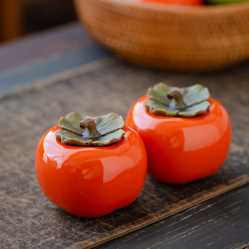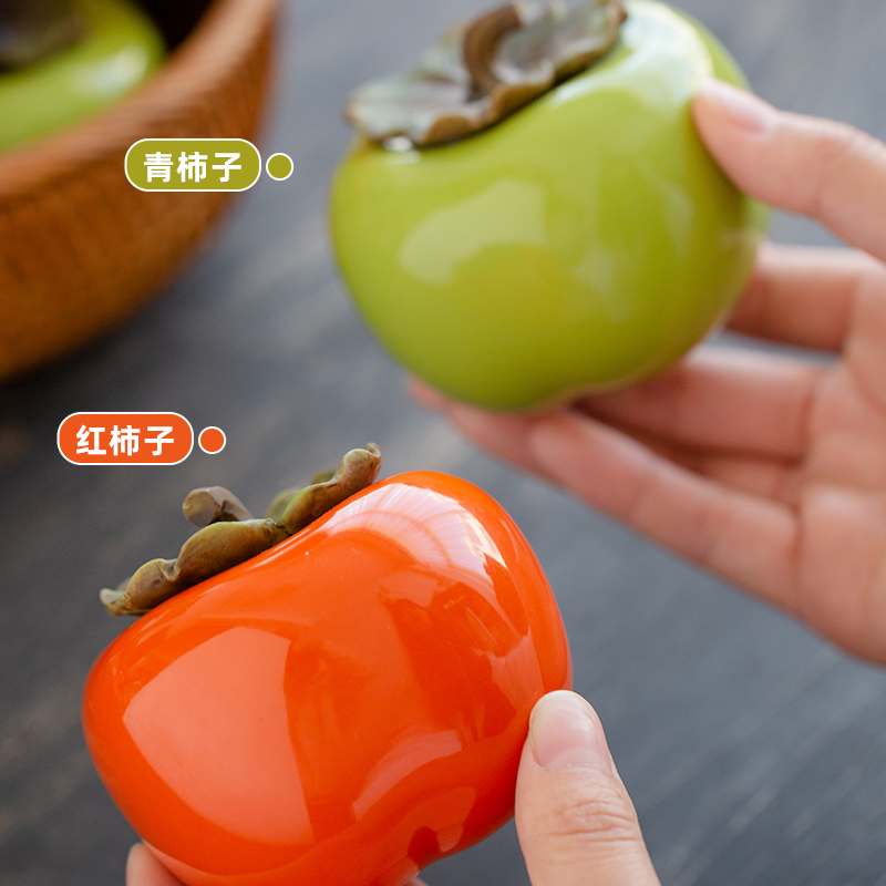 柿柿如意柿子陶瓷简约桌面新房客厅乔迁玄关家居摆件吉祥物茶宠