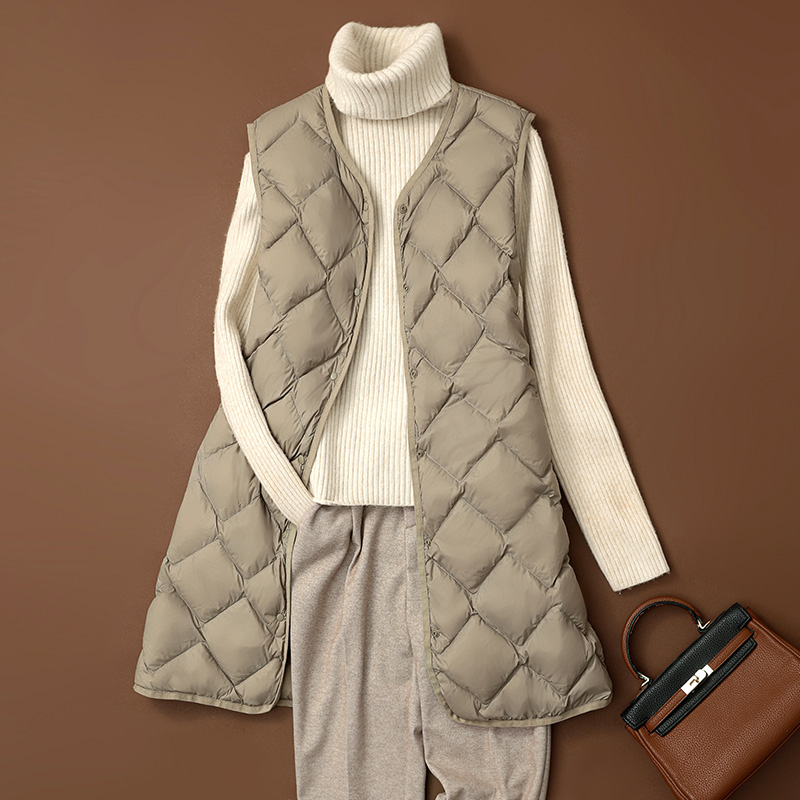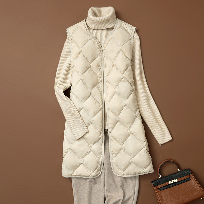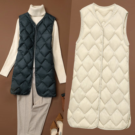 反季轻薄羽绒马甲女中长款圆领秋冬坎肩轻型羽绒内胆运动背心大码